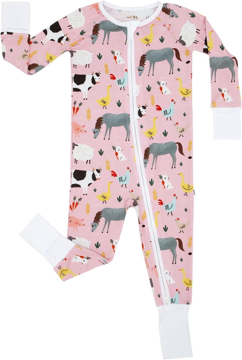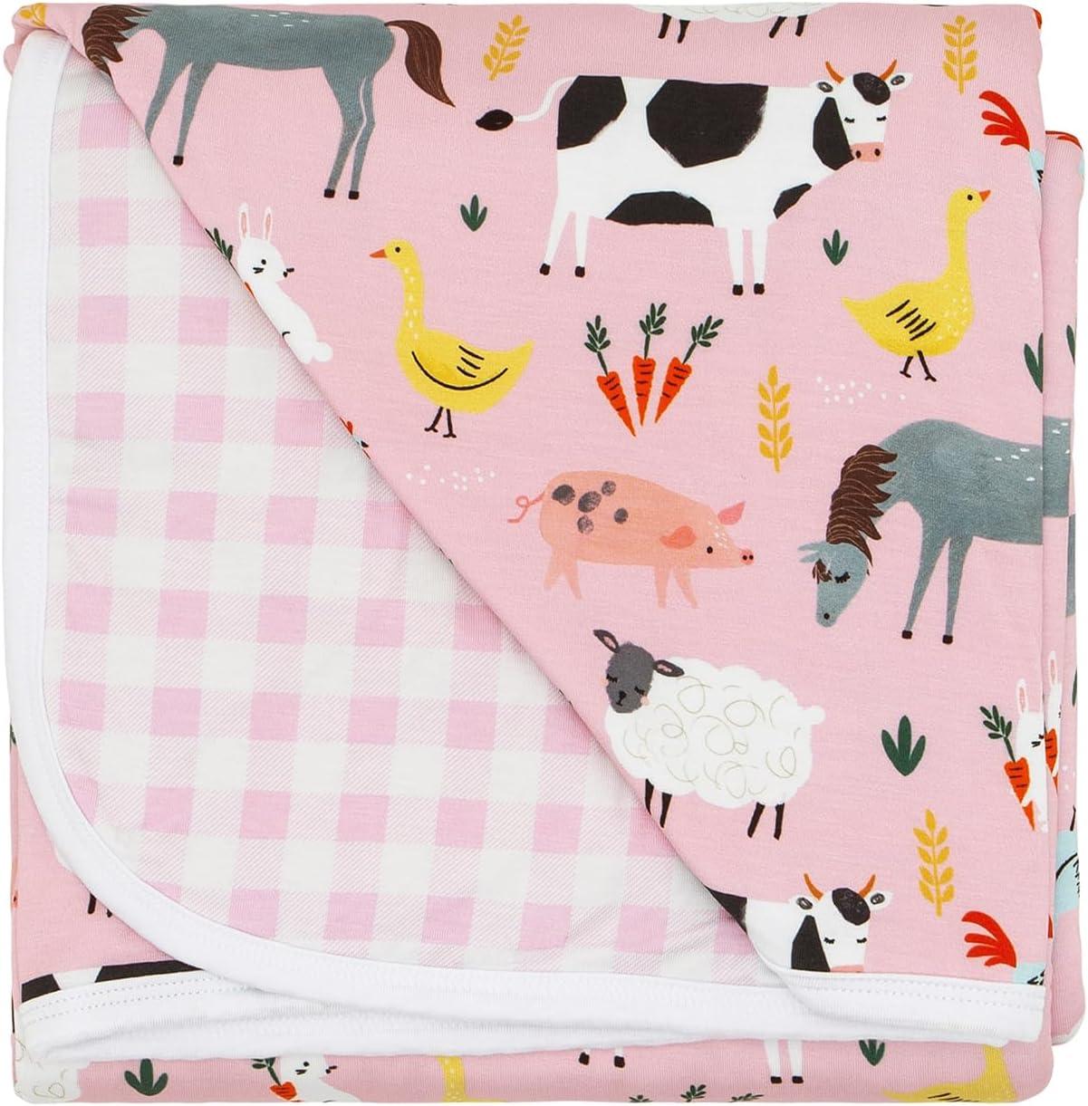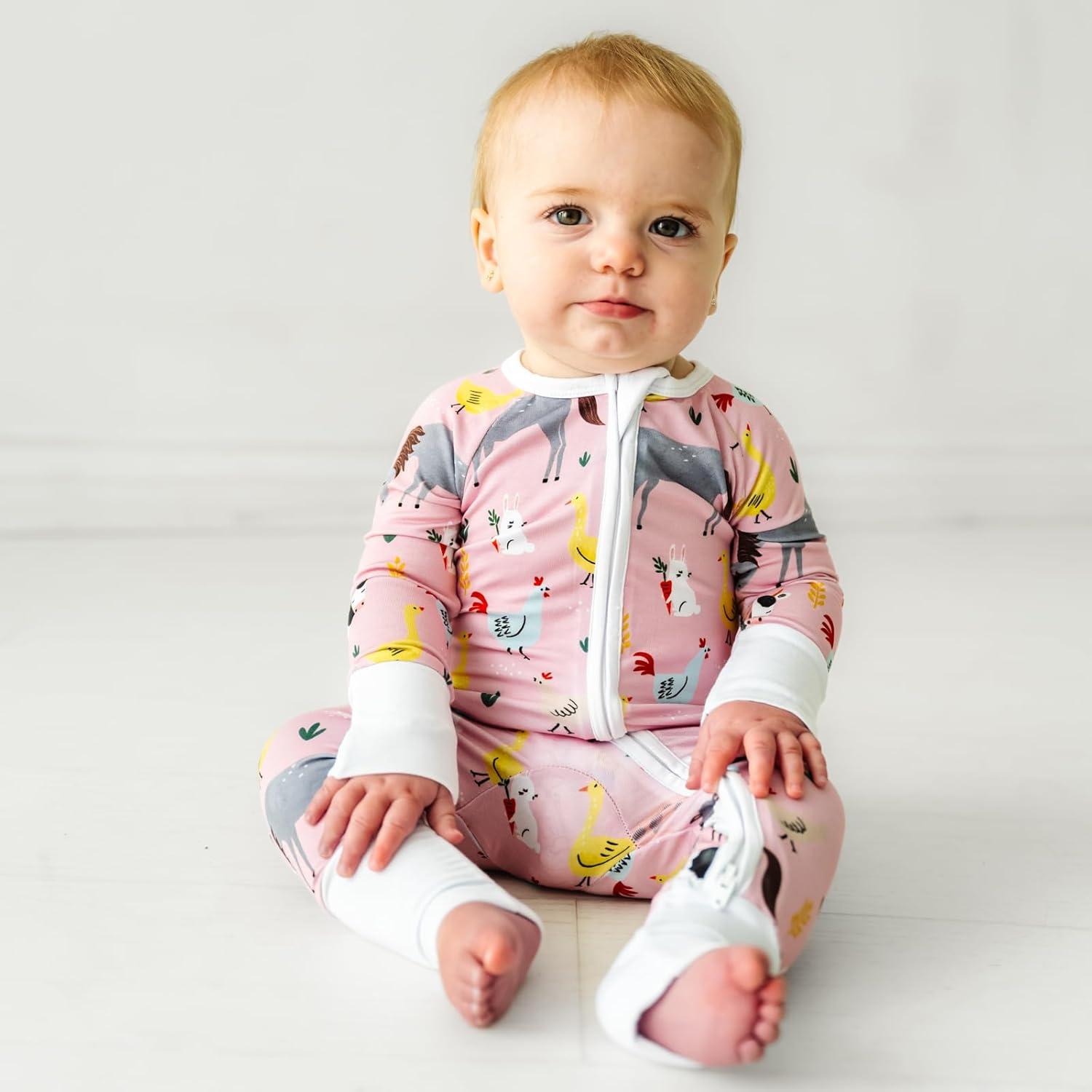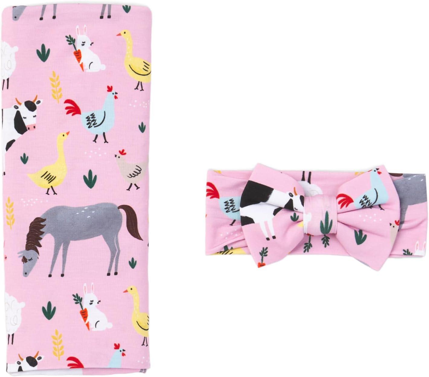 Little Sleepies Pink Farm Animals Sleepy Time Bundle, Includes Newborn Swaddle + Headband Set, 2-Way Zipper Pajamas, and Large Breathable Cloud Blanket for Hot Sleepers, Newborn