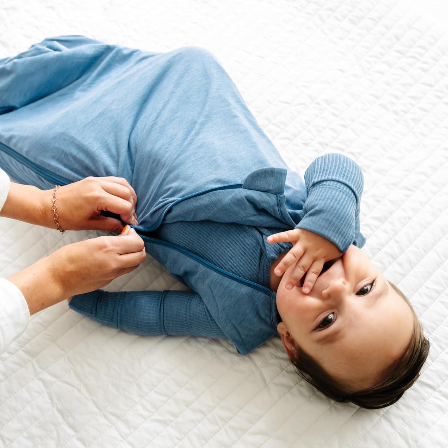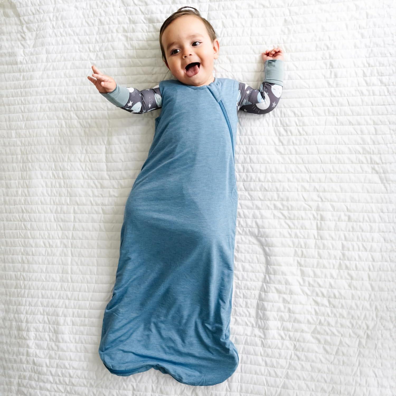 Little Sleepies Seasonless Baby Sleep Sack 1.5 TOG, Soft Viscose from Bamboo Sleep Sack, Newborn Essentials, 2-Way Zipper(Heather Blue)