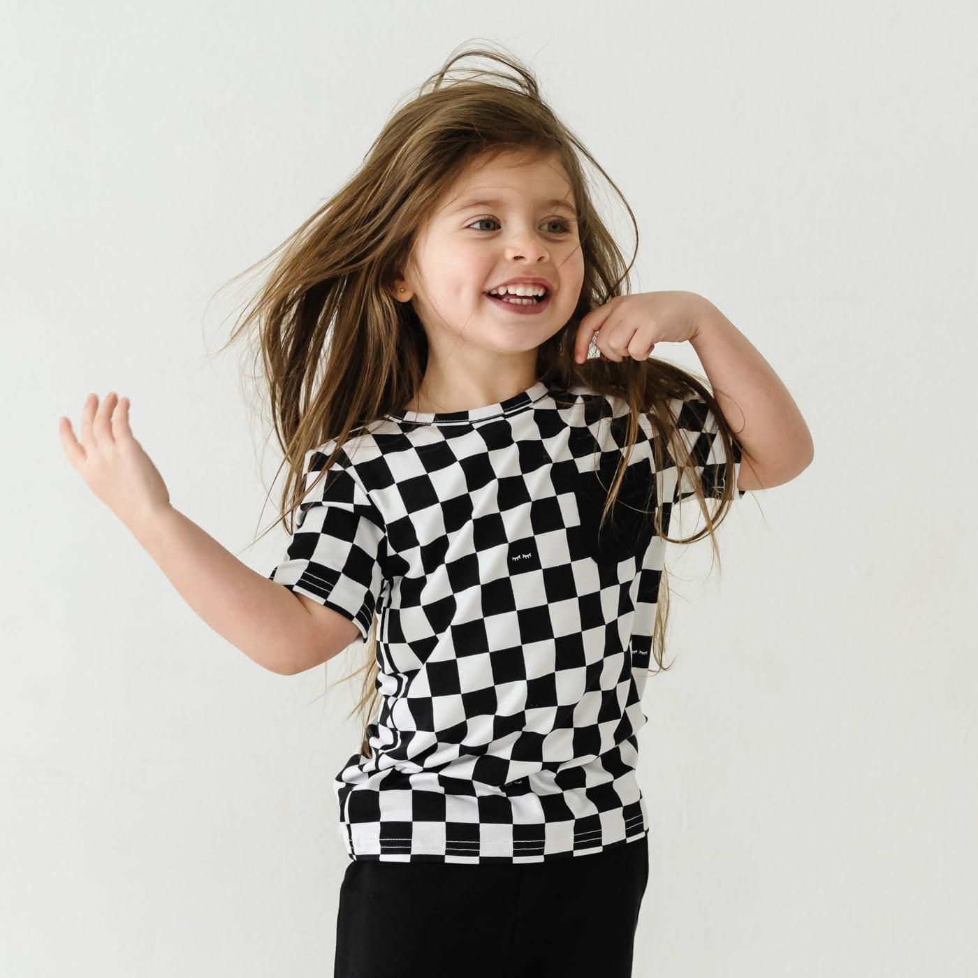 Little Sleepies Short Sleeve Relaxed Pocket Tee for Boys and Girls(Checks)