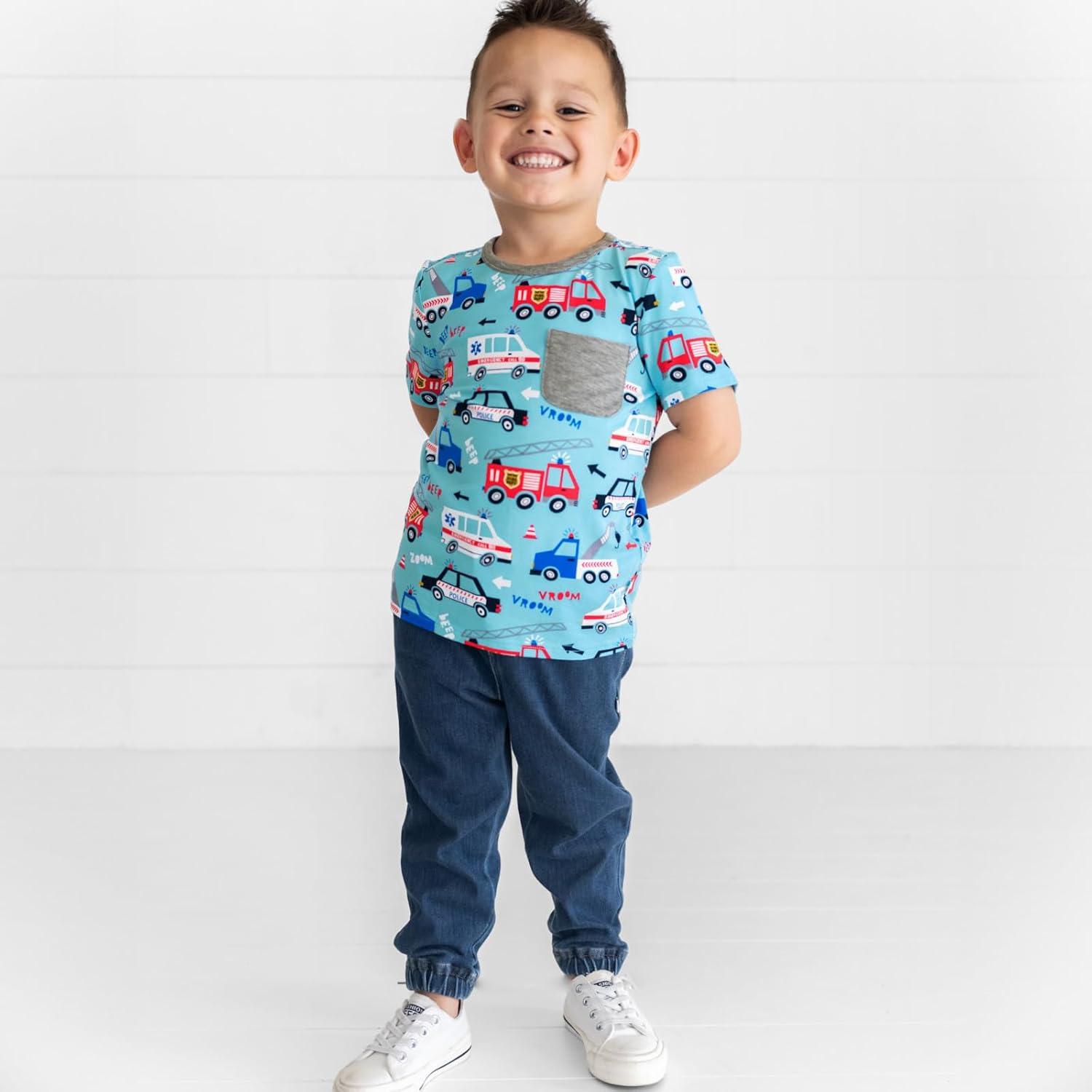 Little Sleepies Short Sleeve Relaxed Pocket Tee for Boys and Girls(To the Rescue)