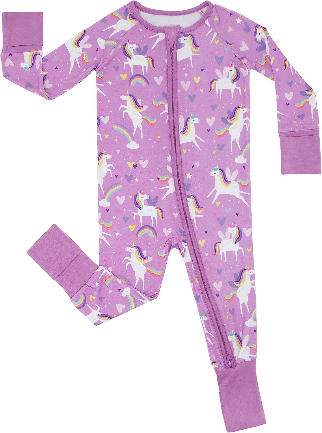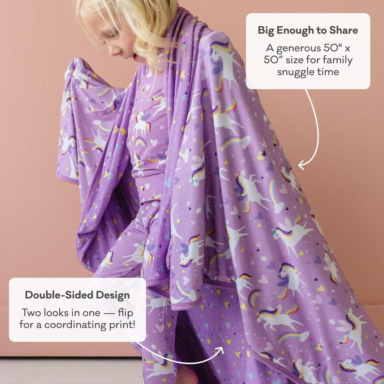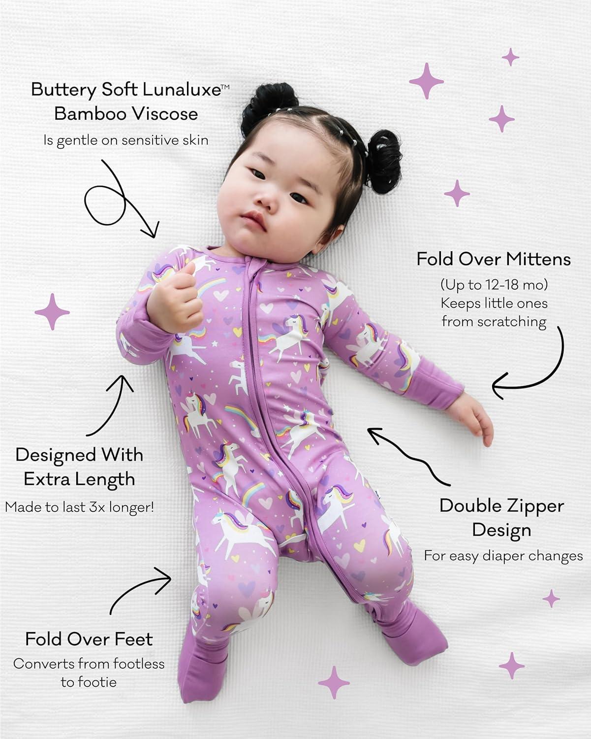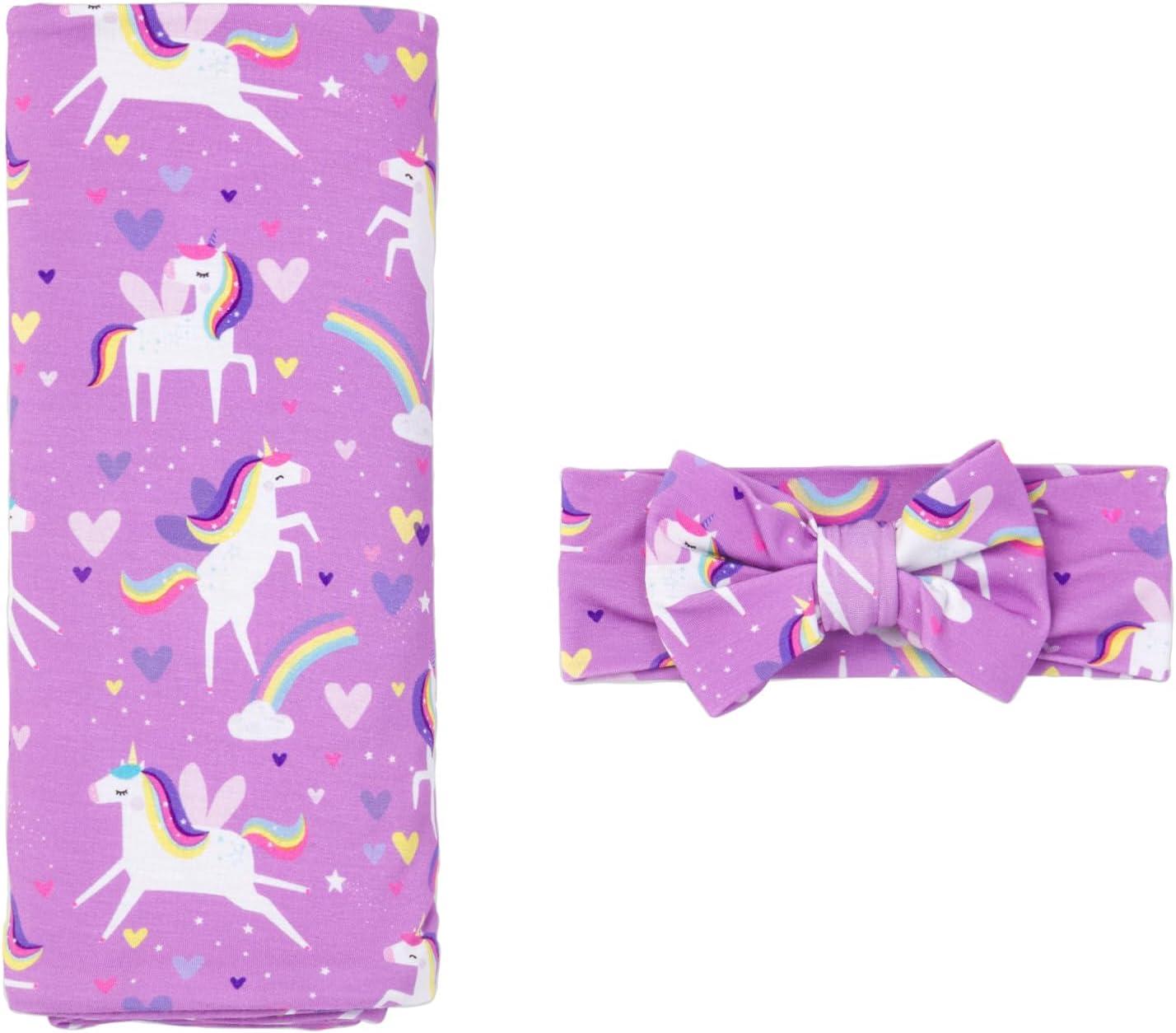 Little Sleepies Sienna’s Unicorns Sleepy Time Bundle, Includes Newborn Swaddle + Headband Set, 2-Way Zipper Pajamas, and Large Breathable Cloud Blanket for Hot Sleepers, Newborn