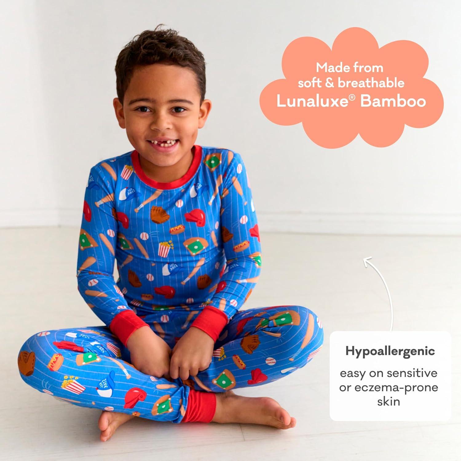 Little Sleepies Two-Piece Pajama Set for Boys & Girls, Soft Viscose from Bamboo Toddler Pajamas for Kids, Family Matching PJs(Blue All Stars)