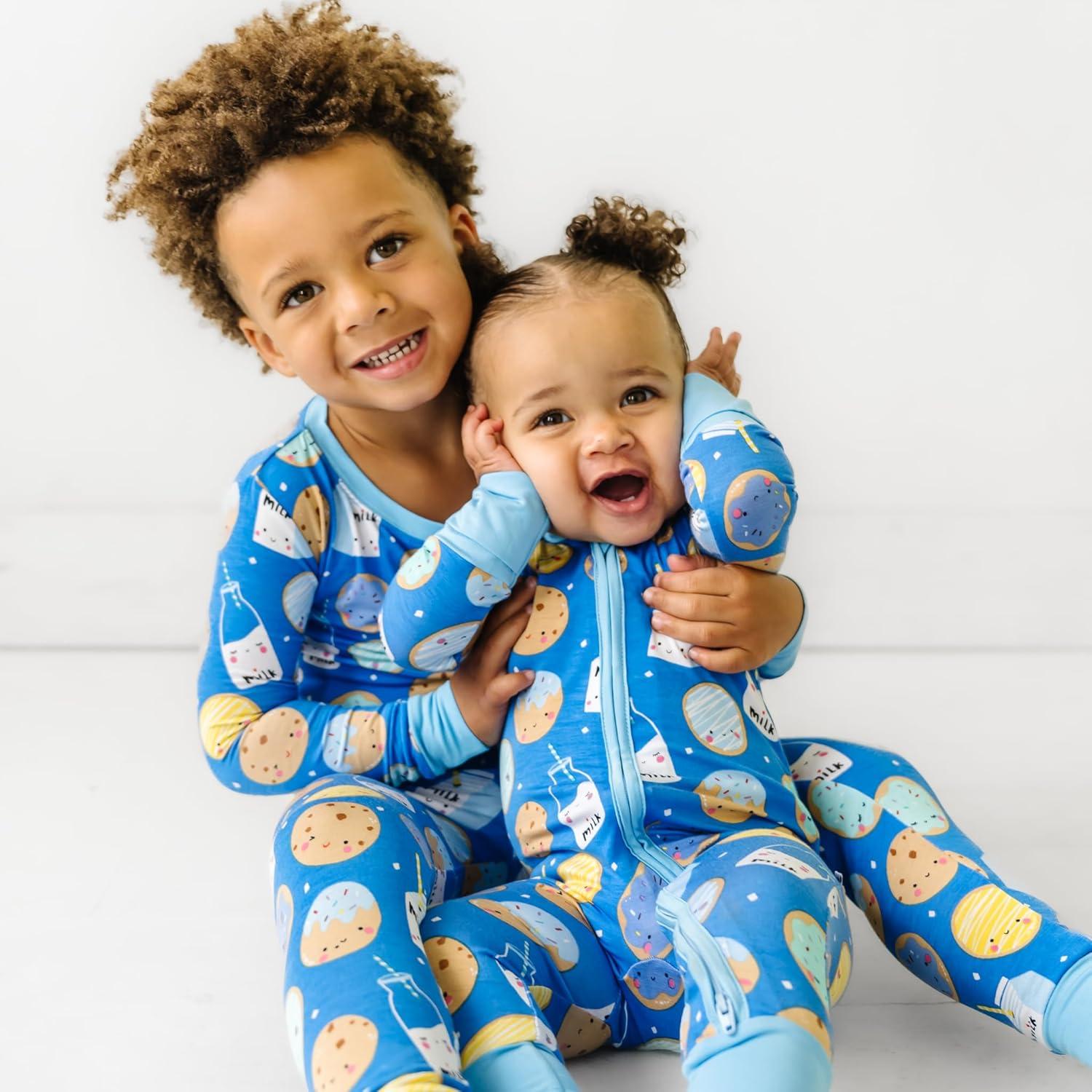 Little Sleepies Two-Piece Pajama Set for Boys & Girls, Soft Viscose from Bamboo Toddler Pajamas for Kids, Family Matching PJs(Blue Cookies & Milk)