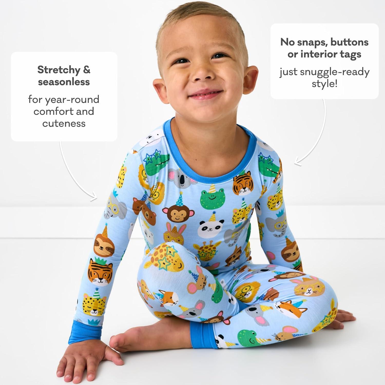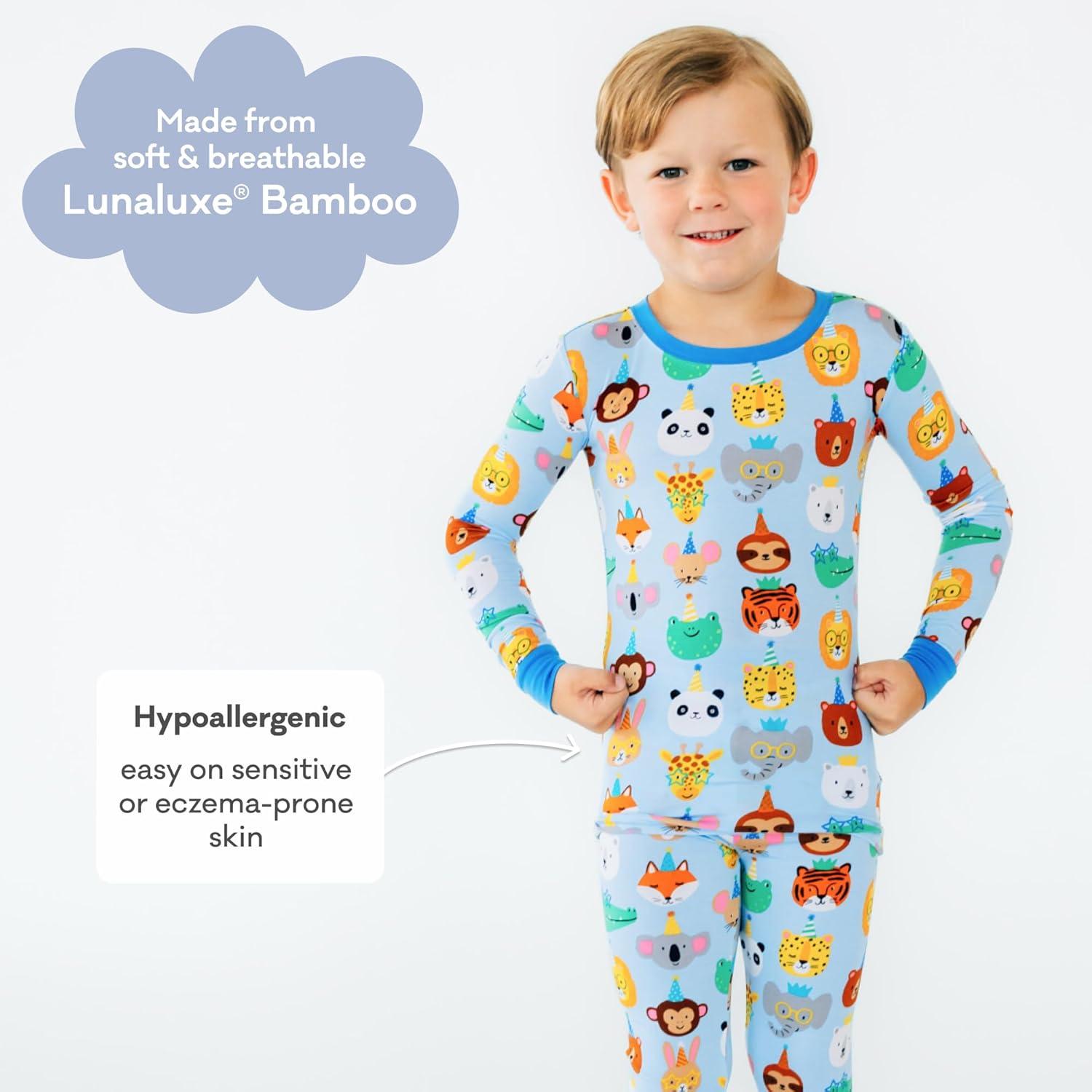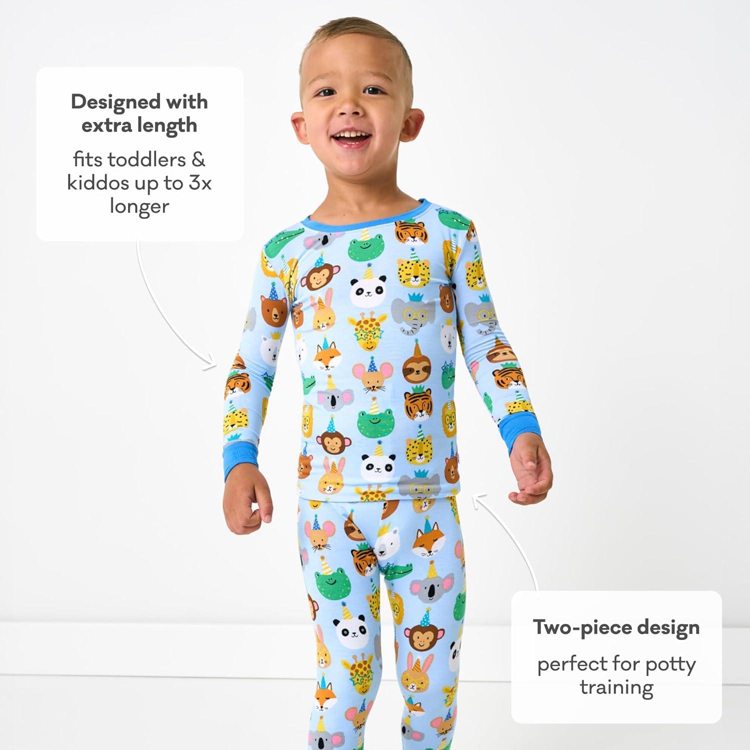 Little Sleepies Two-Piece Pajama Set for Boys & Girls, Soft Viscose from Bamboo Toddler Pajamas for Kids, Family Matching PJs(Blue Party Pals)