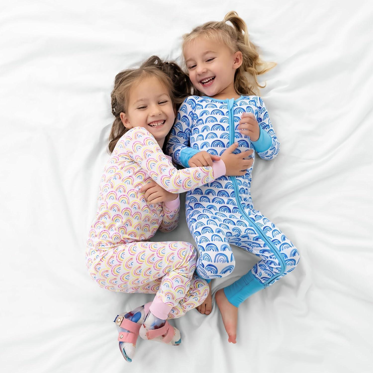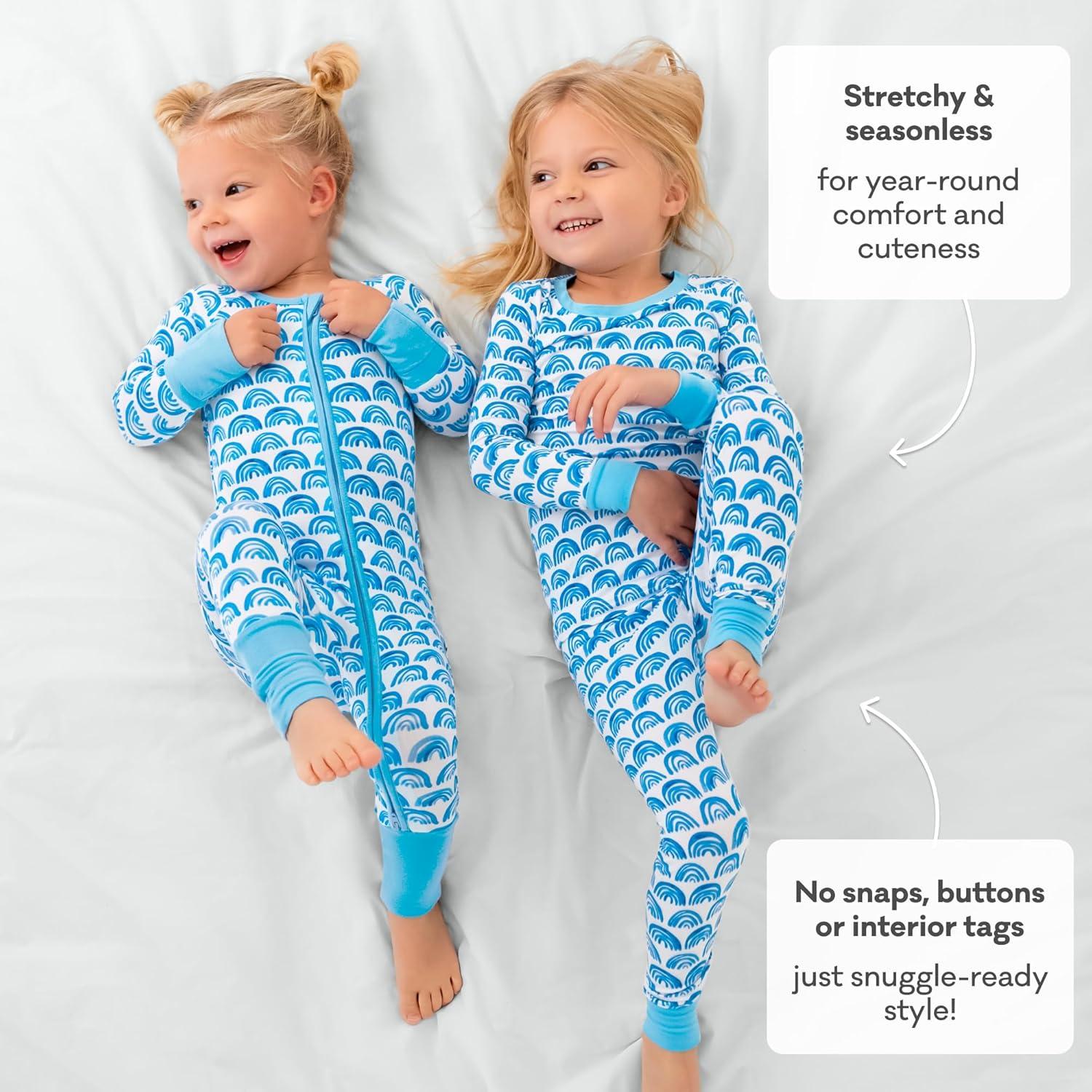 Little Sleepies Two-Piece Pajama Set for Boys & Girls, Soft Viscose from Bamboo Toddler Pajamas for Kids, Family Matching PJs(Blue Rainbows)