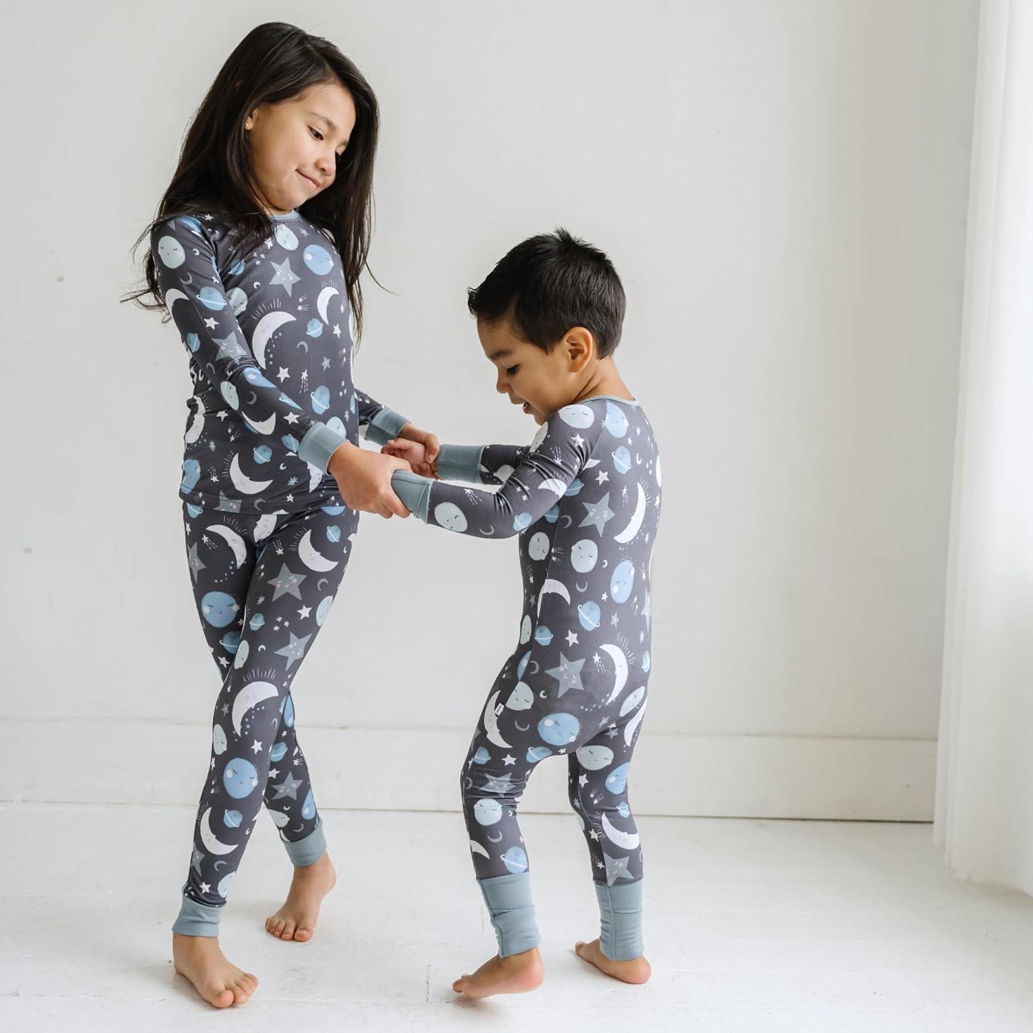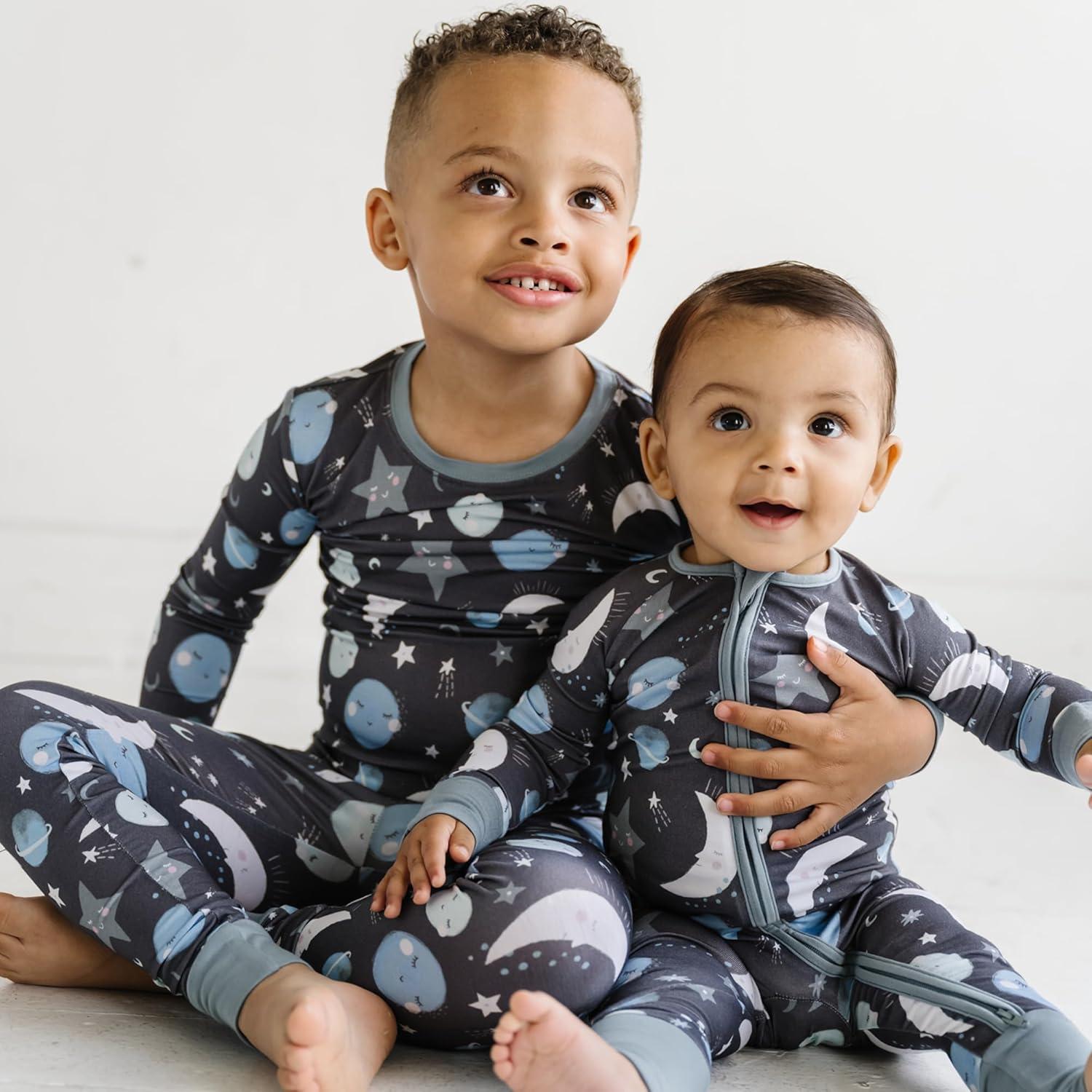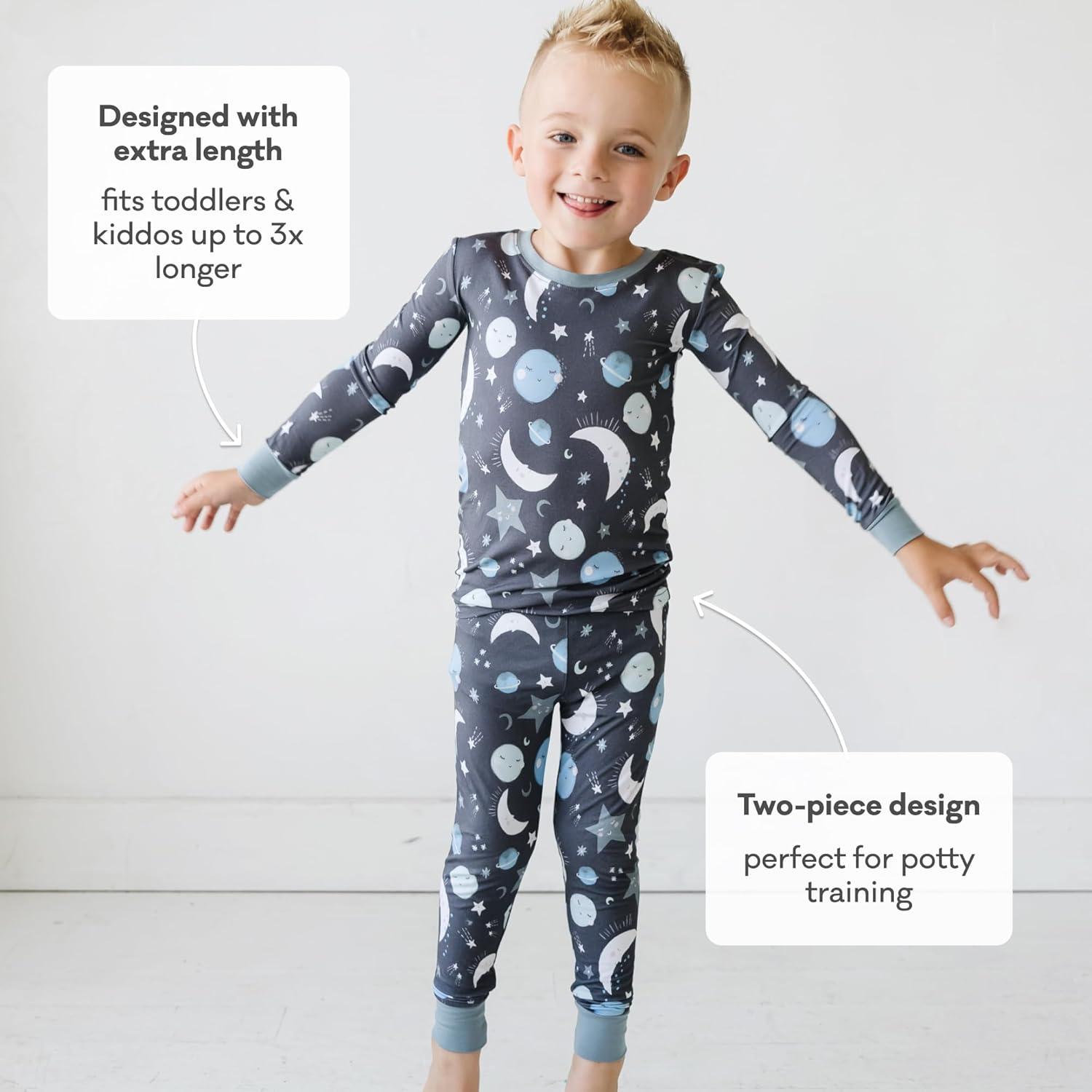 Little Sleepies Two-Piece Pajama Set for Boys & Girls, Soft Viscose from Bamboo Toddler Pajamas for Kids, Family Matching PJs(Blue to the Moon & Back)