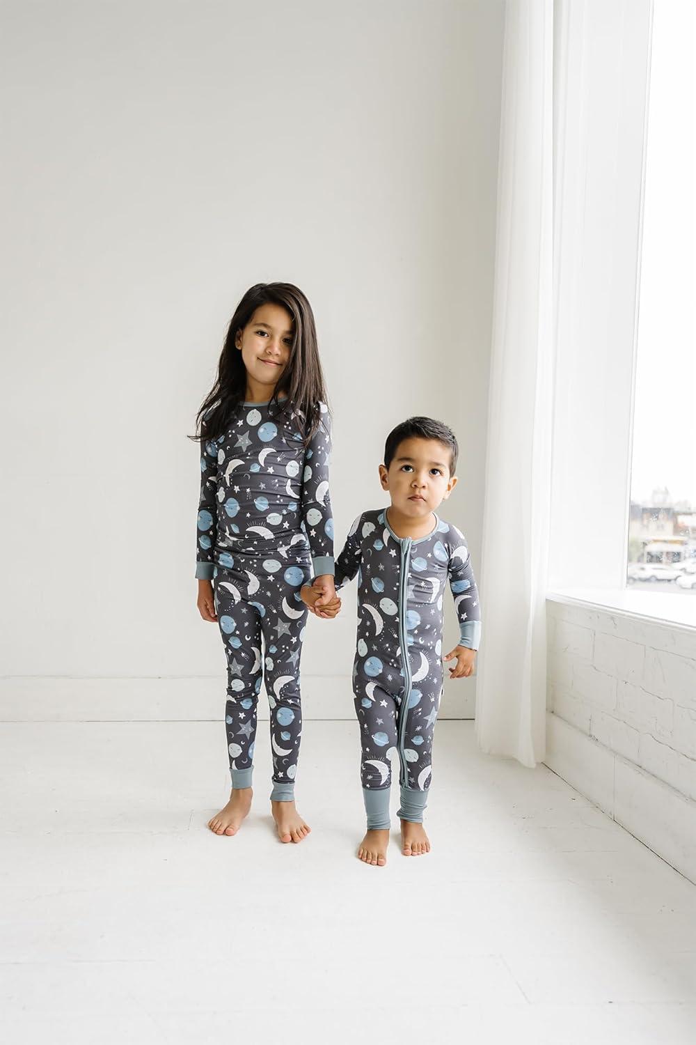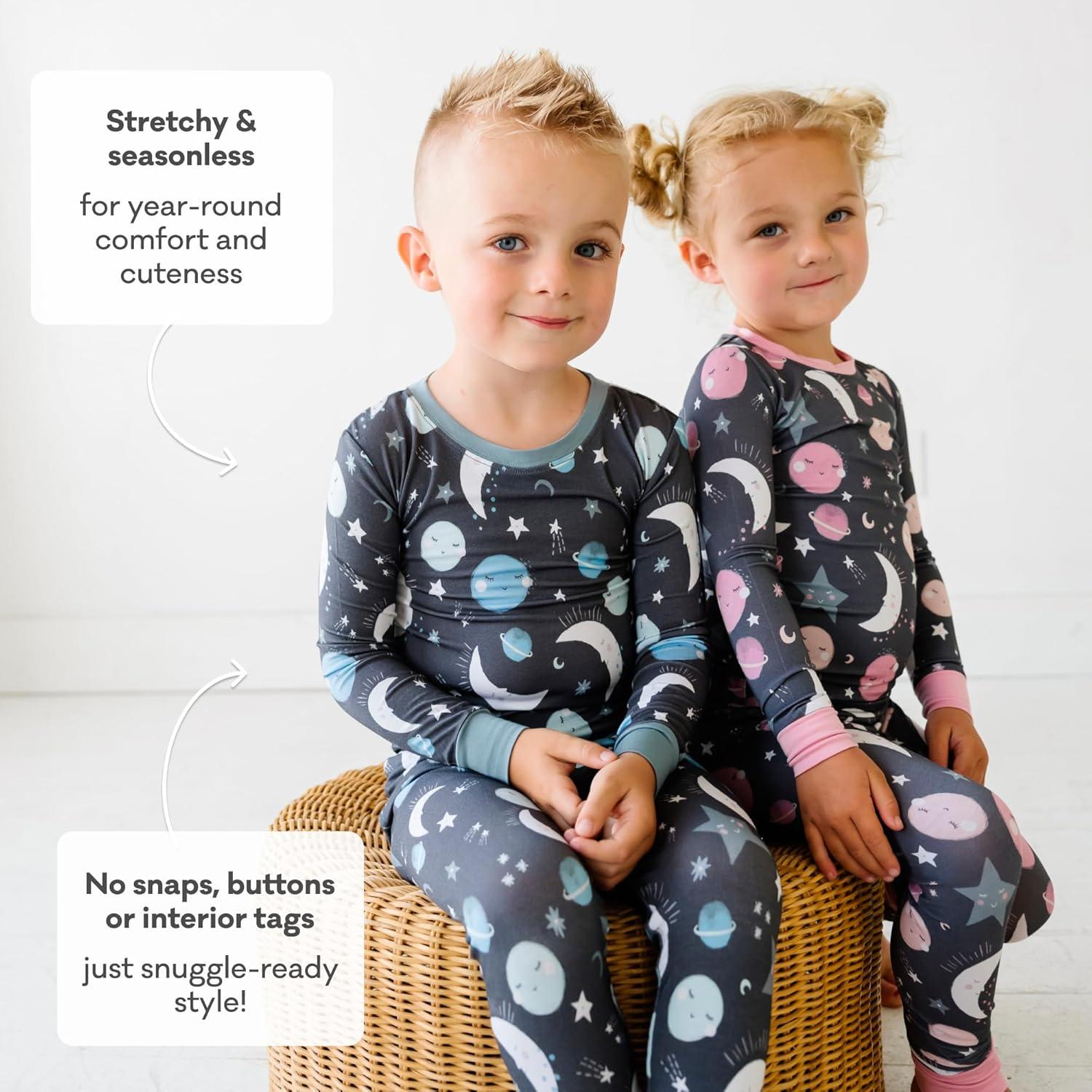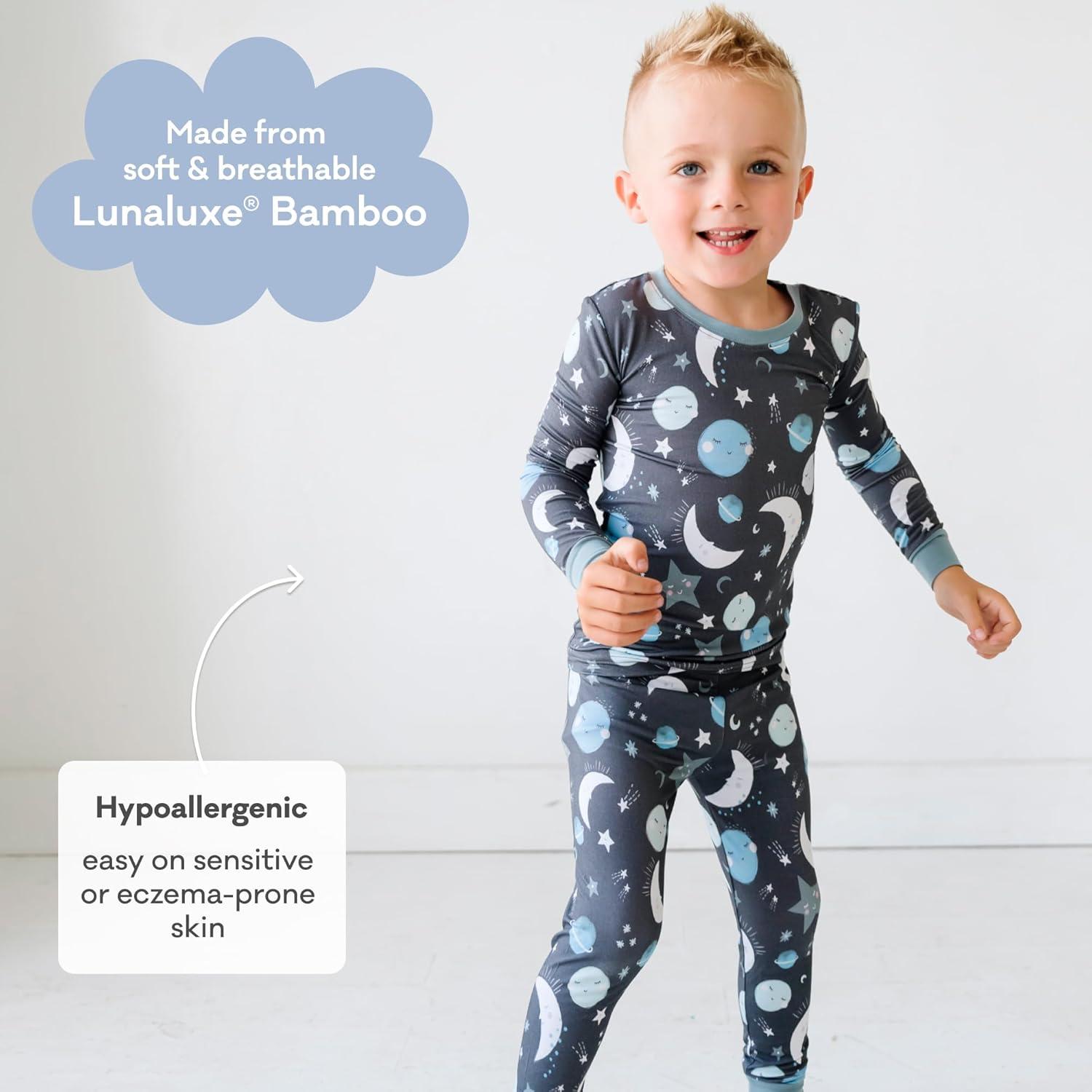Little Sleepies Two-Piece Pajama Set for Boys & Girls, Soft Viscose from Bamboo Toddler Pajamas for Kids, Family Matching PJs(Blue to the Moon & Back)