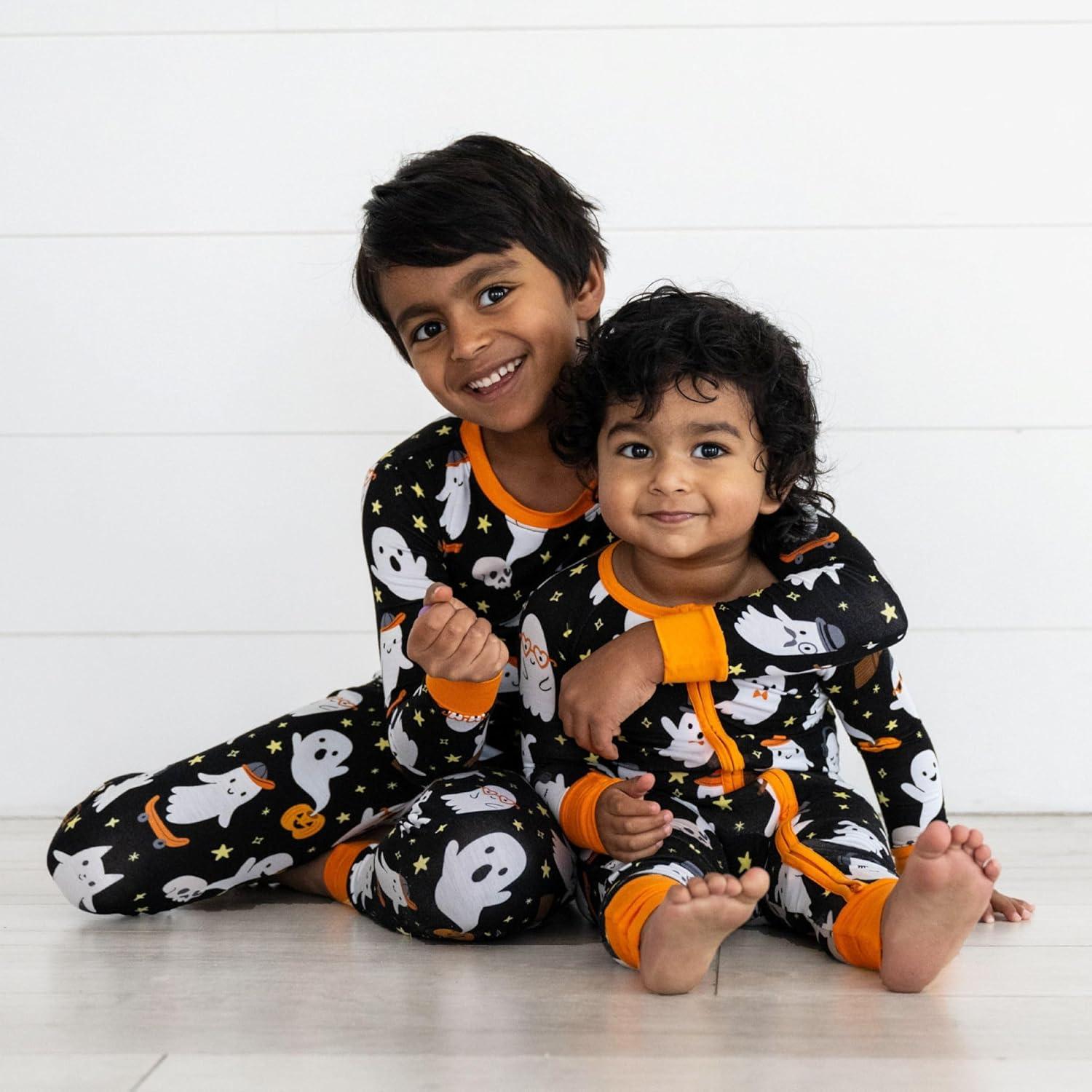 Little Sleepies Two-Piece Pajama Set for Boys & Girls, Soft Viscose from Bamboo Toddler Pajamas for Kids, Family Matching PJs(Friendly Ghosts)