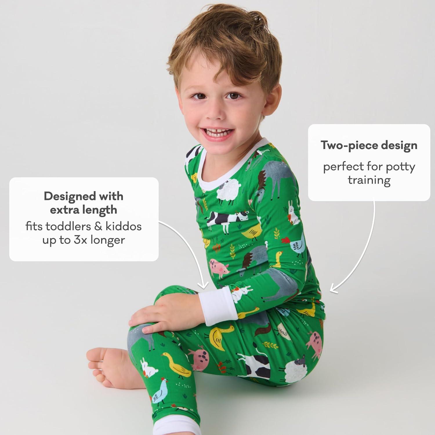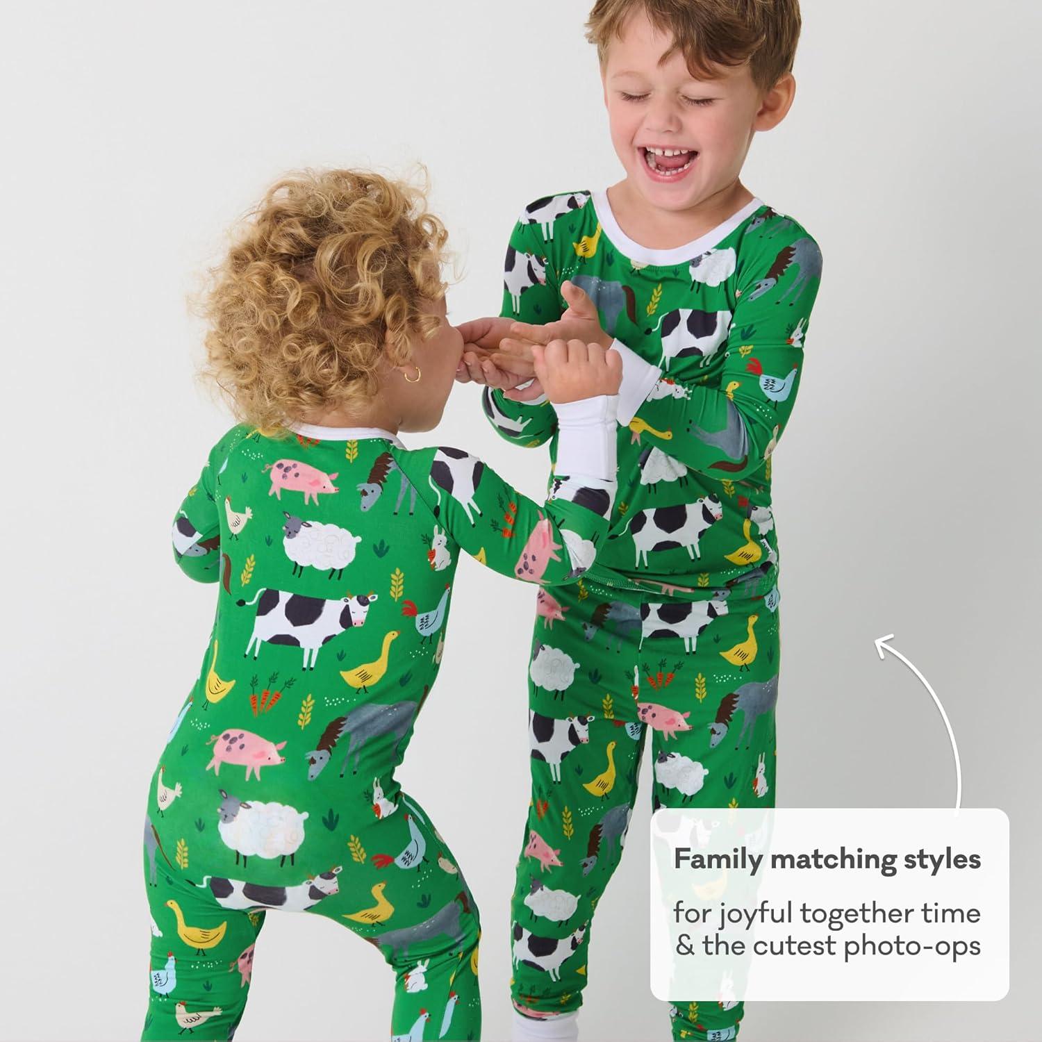Little Sleepies Two-Piece Pajama Set for Boys & Girls, Soft Viscose from Bamboo Toddler Pajamas for Kids, Family Matching PJs(Green Farm Animals)