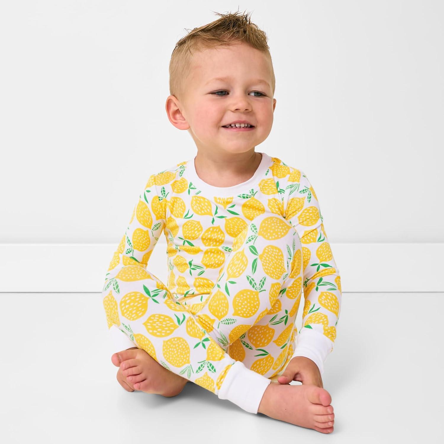 Little Sleepies Two-Piece Pajama Set for Boys & Girls, Soft Viscose from Bamboo Toddler Pajamas for Kids, Family Matching PJs(Lemons)