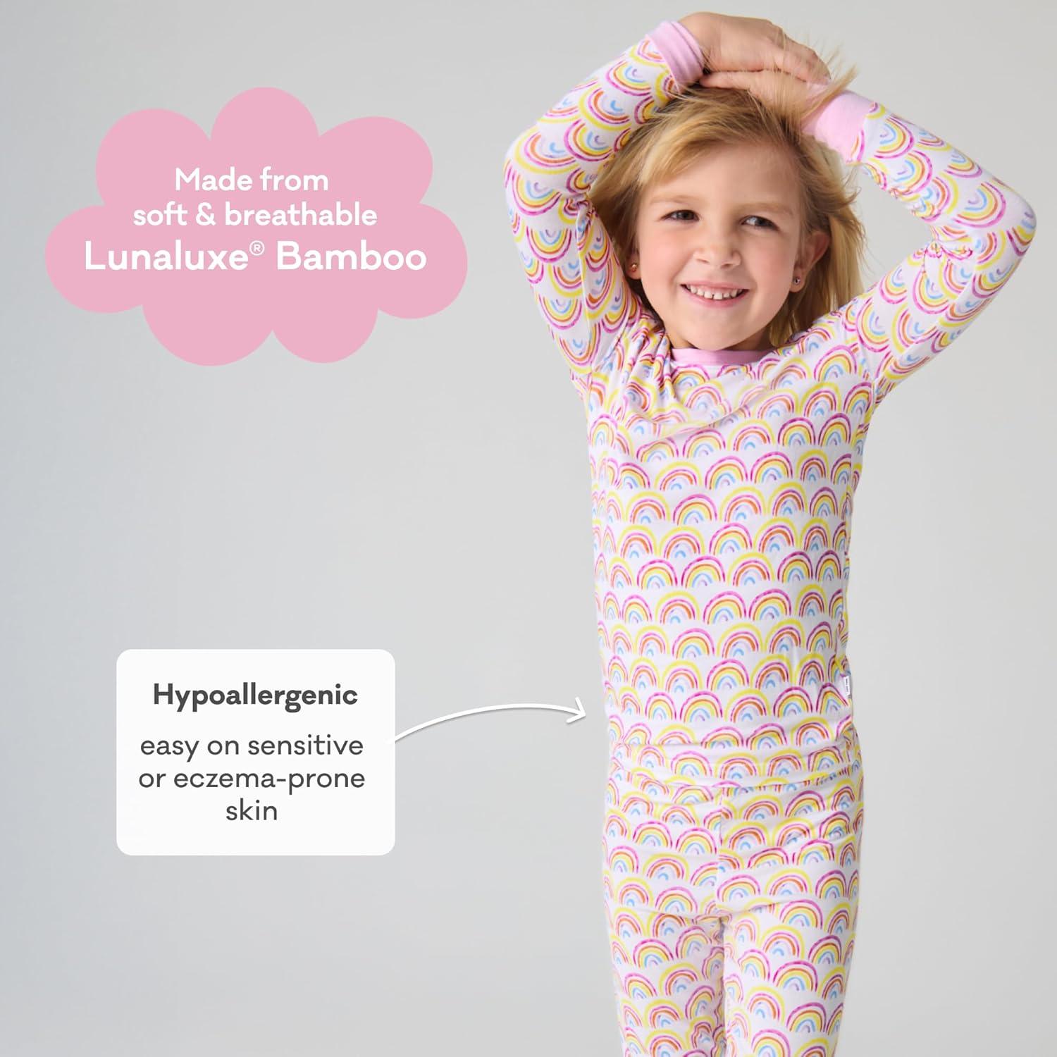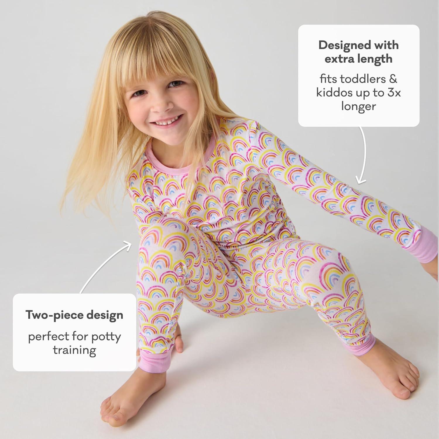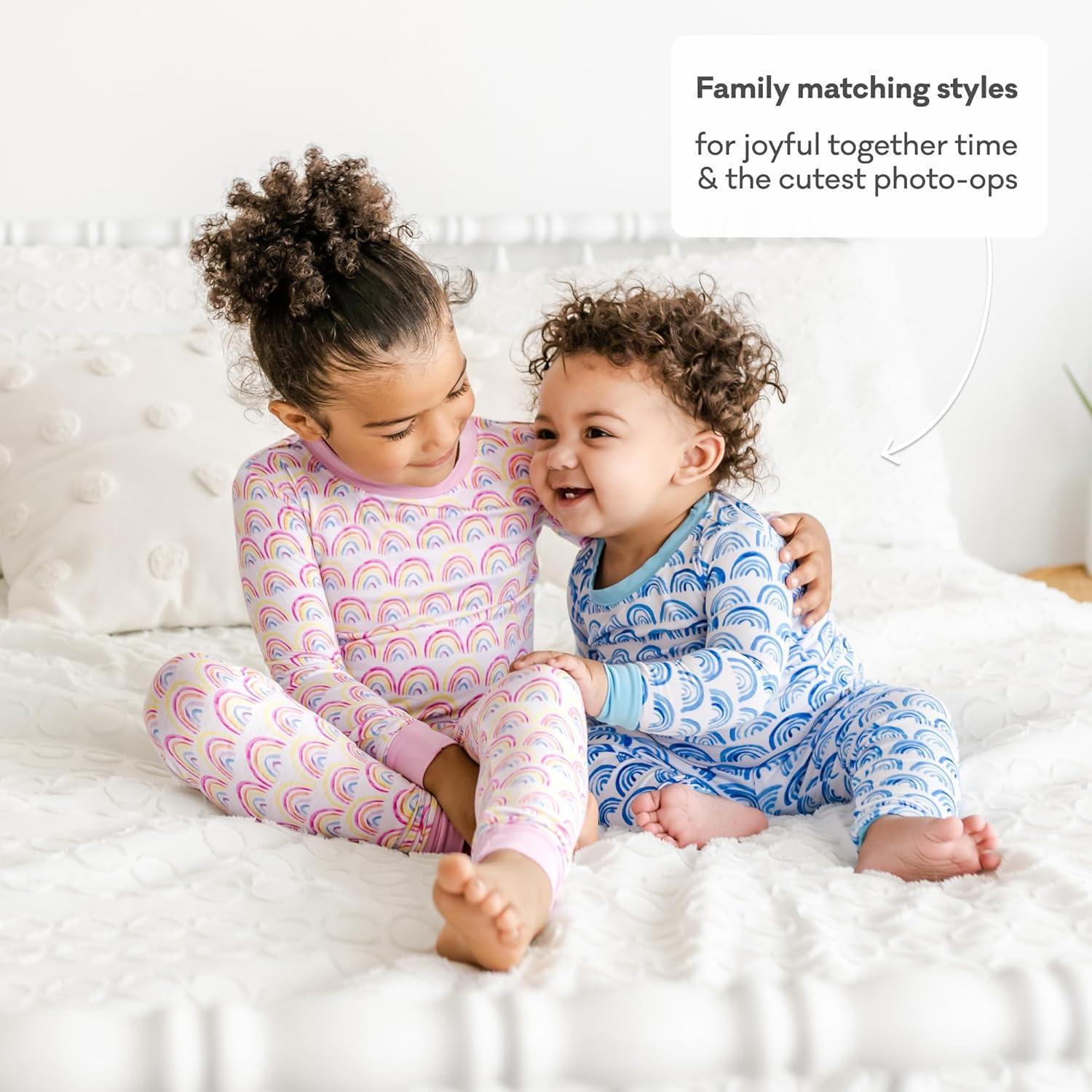 Little Sleepies Two-Piece Pajama Set for Boys & Girls, Soft Viscose from Bamboo Toddler Pajamas for Kids, Family Matching PJs(Pastel Rainbows)