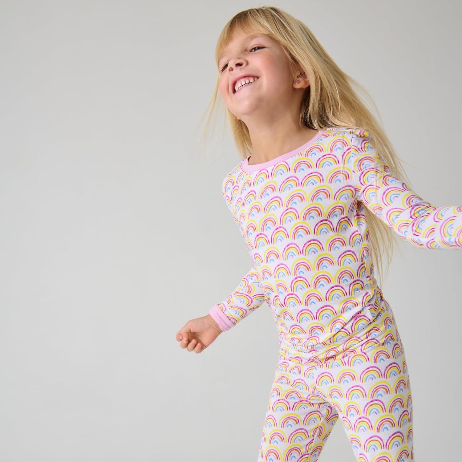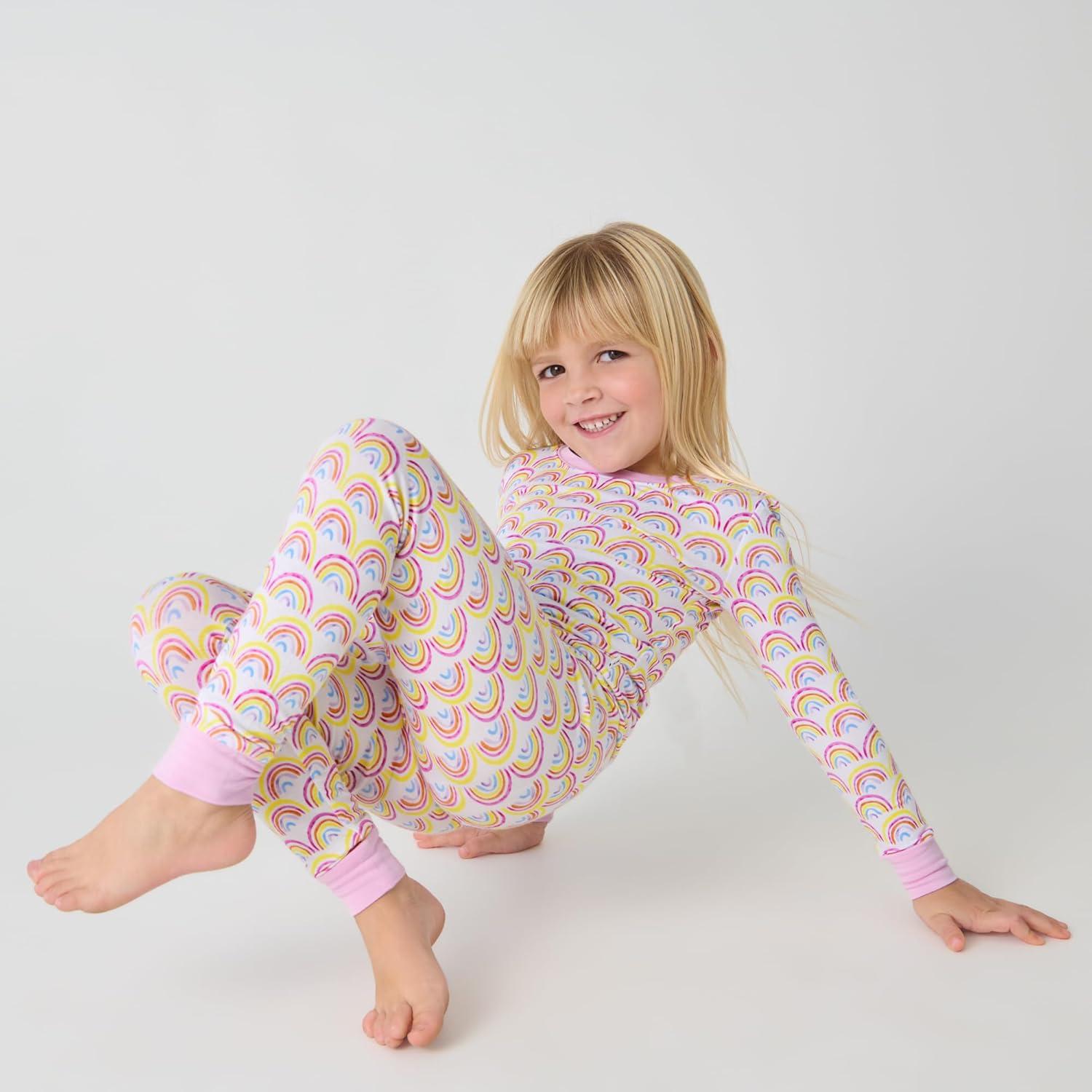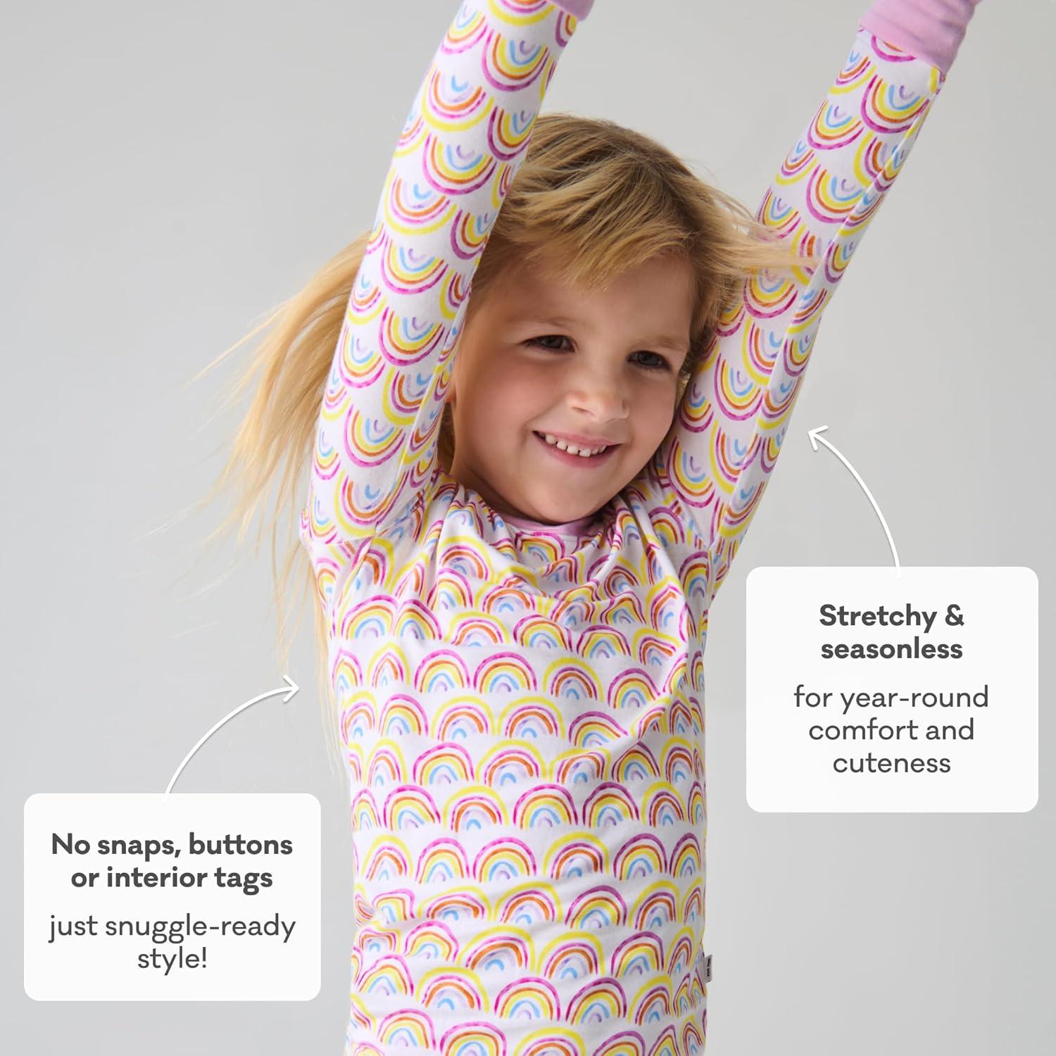 Little Sleepies Two-Piece Pajama Set for Boys & Girls, Soft Viscose from Bamboo Toddler Pajamas for Kids, Family Matching PJs(Pastel Rainbows)