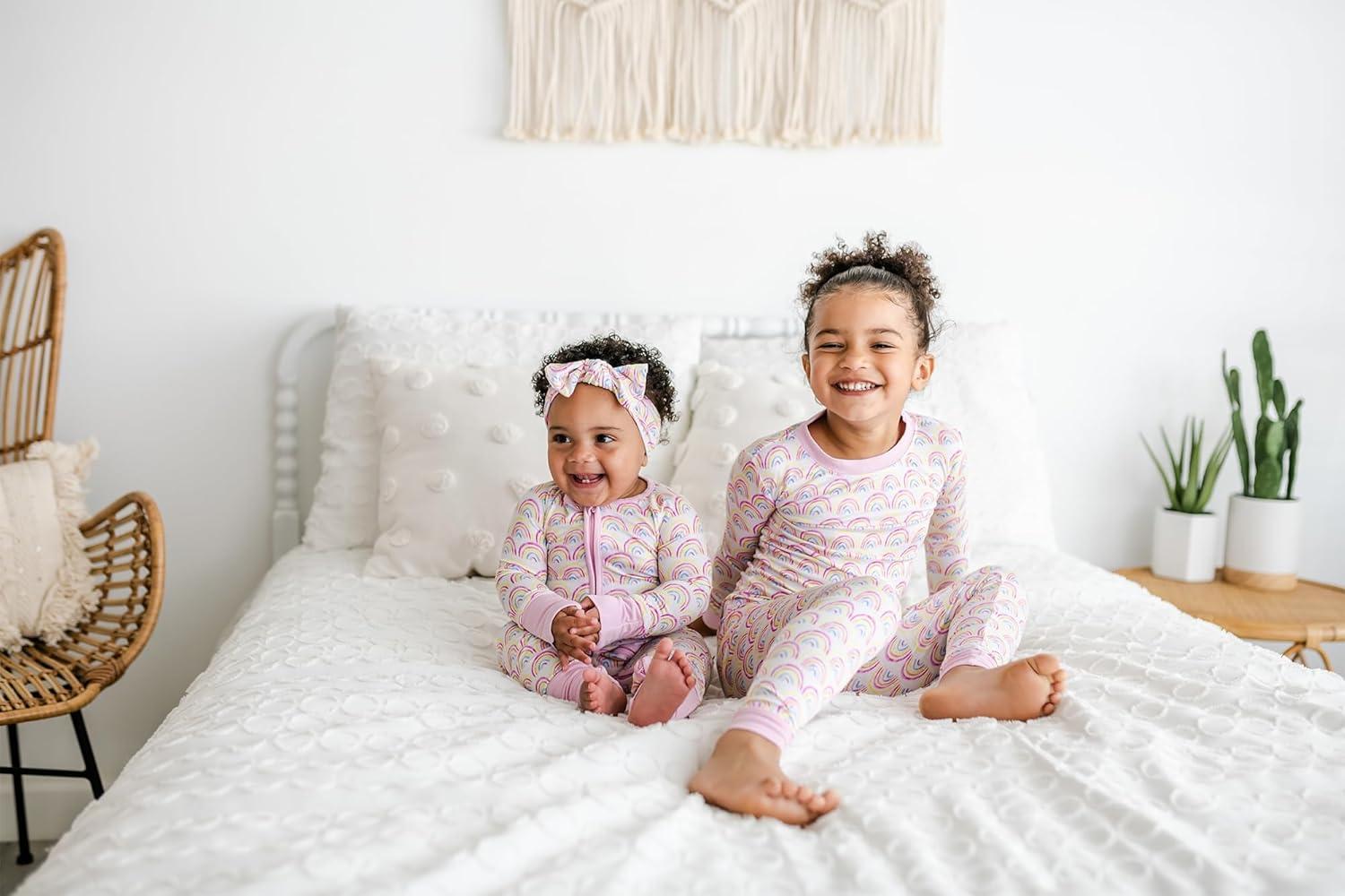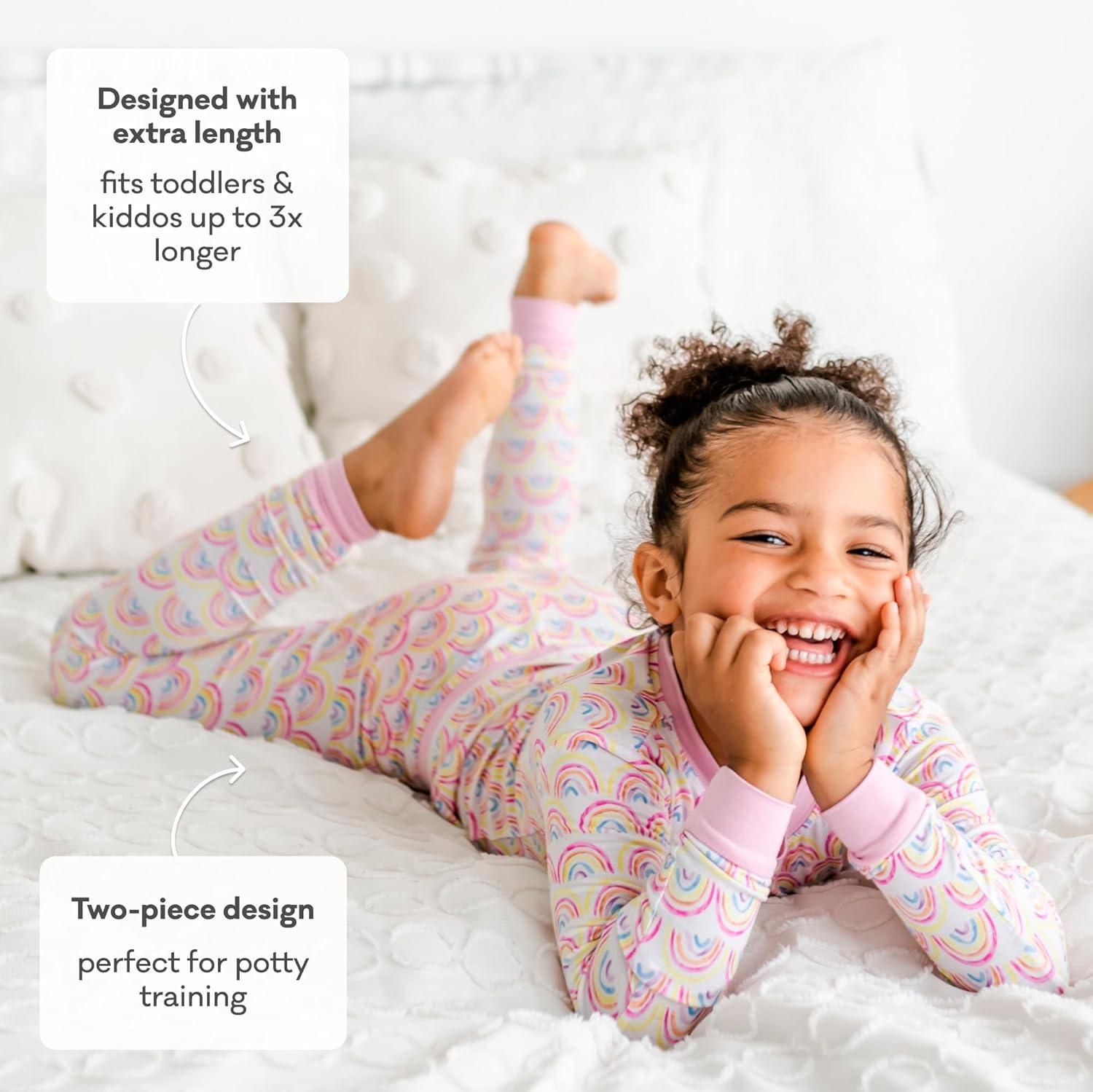 Little Sleepies Two-Piece Pajama Set for Boys & Girls, Soft Viscose from Bamboo Toddler Pajamas for Kids, Family Matching PJs(Pastel Rainbows)