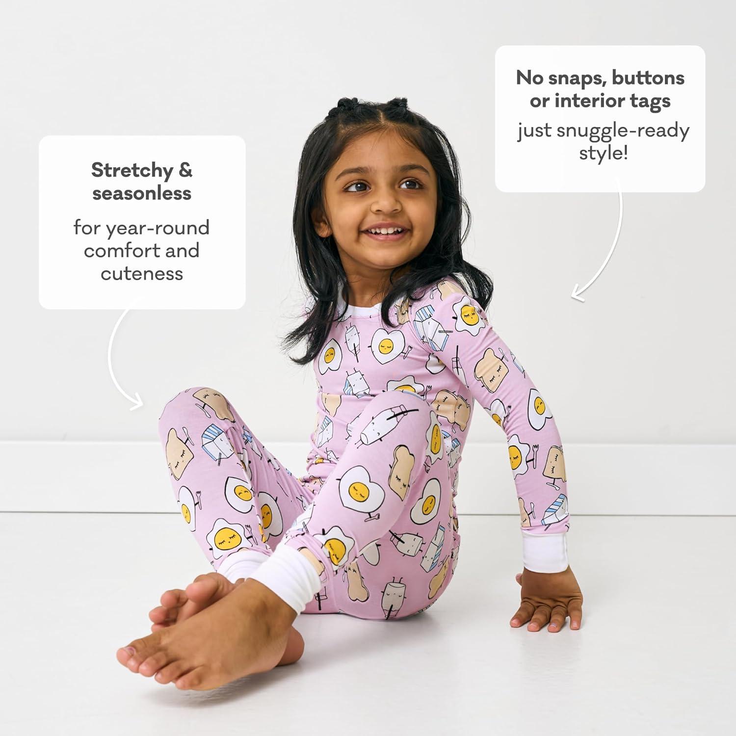 Little Sleepies Two-Piece Pajama Set for Boys & Girls, Soft Viscose from Bamboo Toddler Pajamas for Kids, Family Matching PJs(Pink Breakfast Buddies)