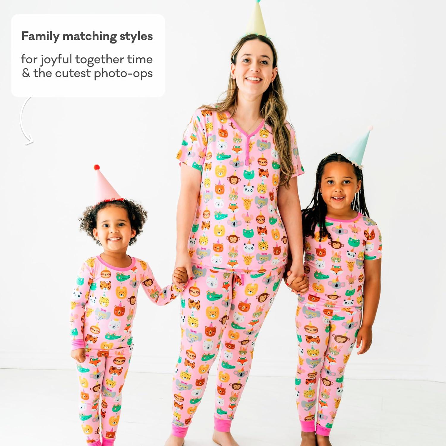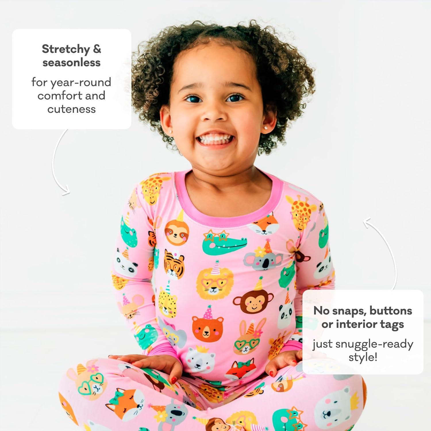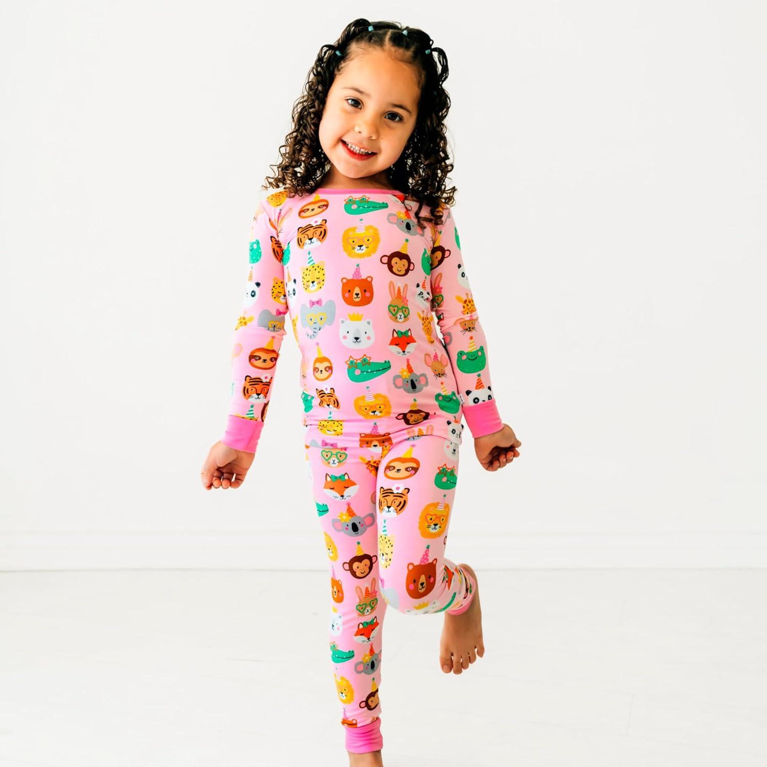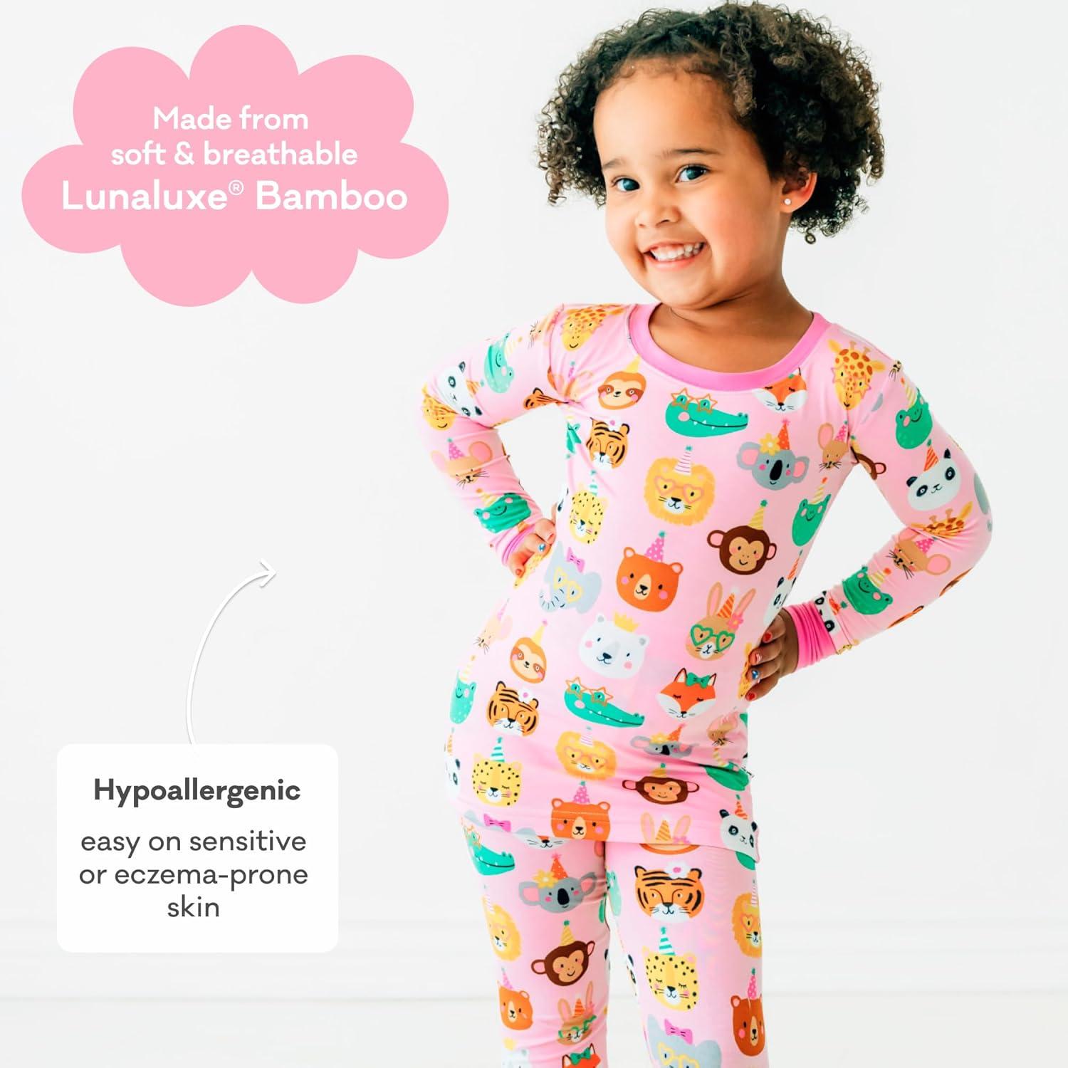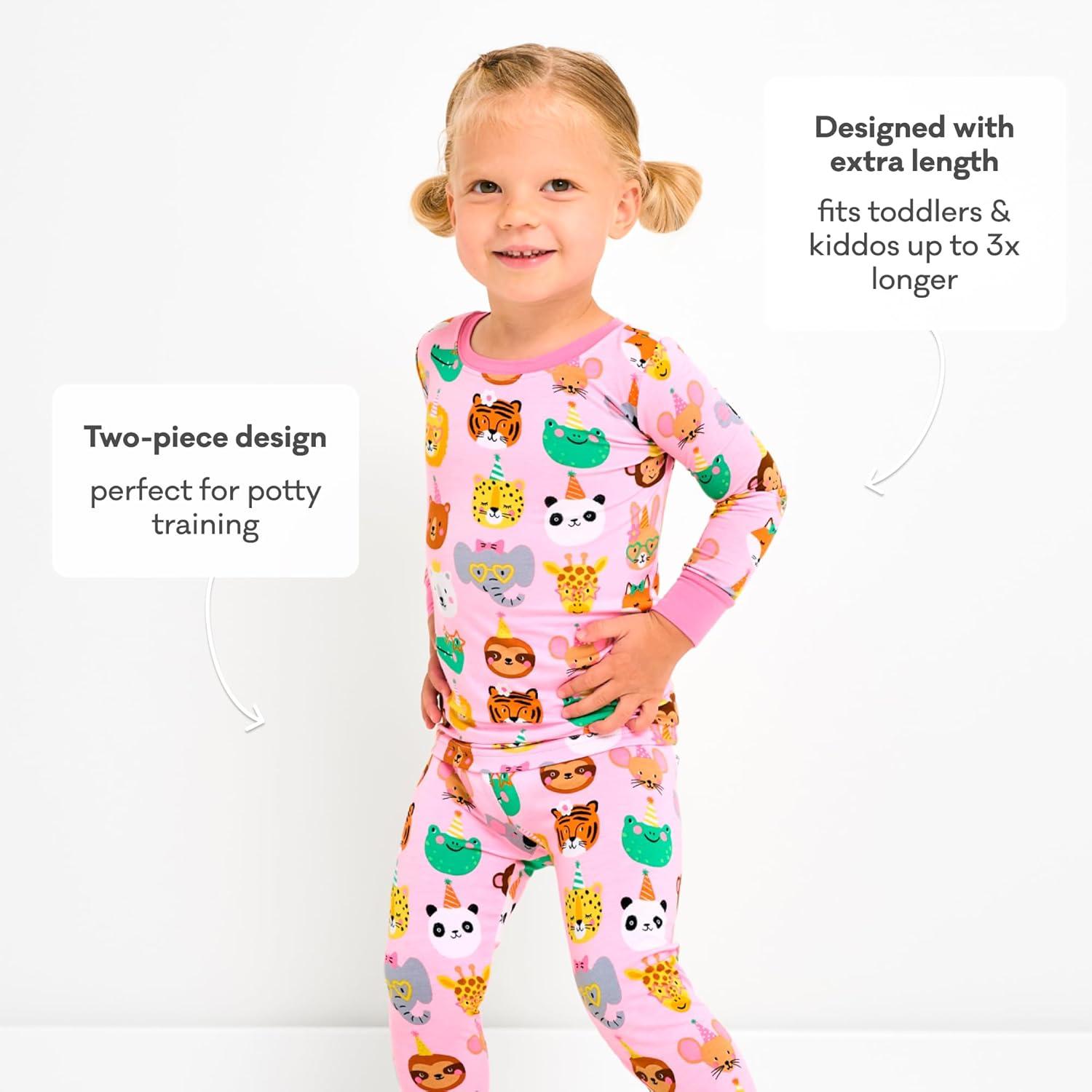 Little Sleepies Two-Piece Pajama Set for Boys & Girls, Soft Viscose from Bamboo Toddler Pajamas for Kids, Family Matching PJs(Pink Party Pals)