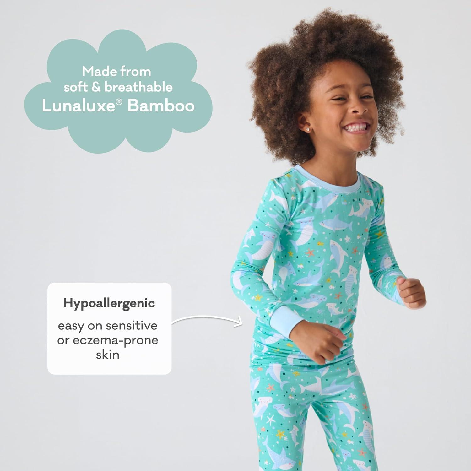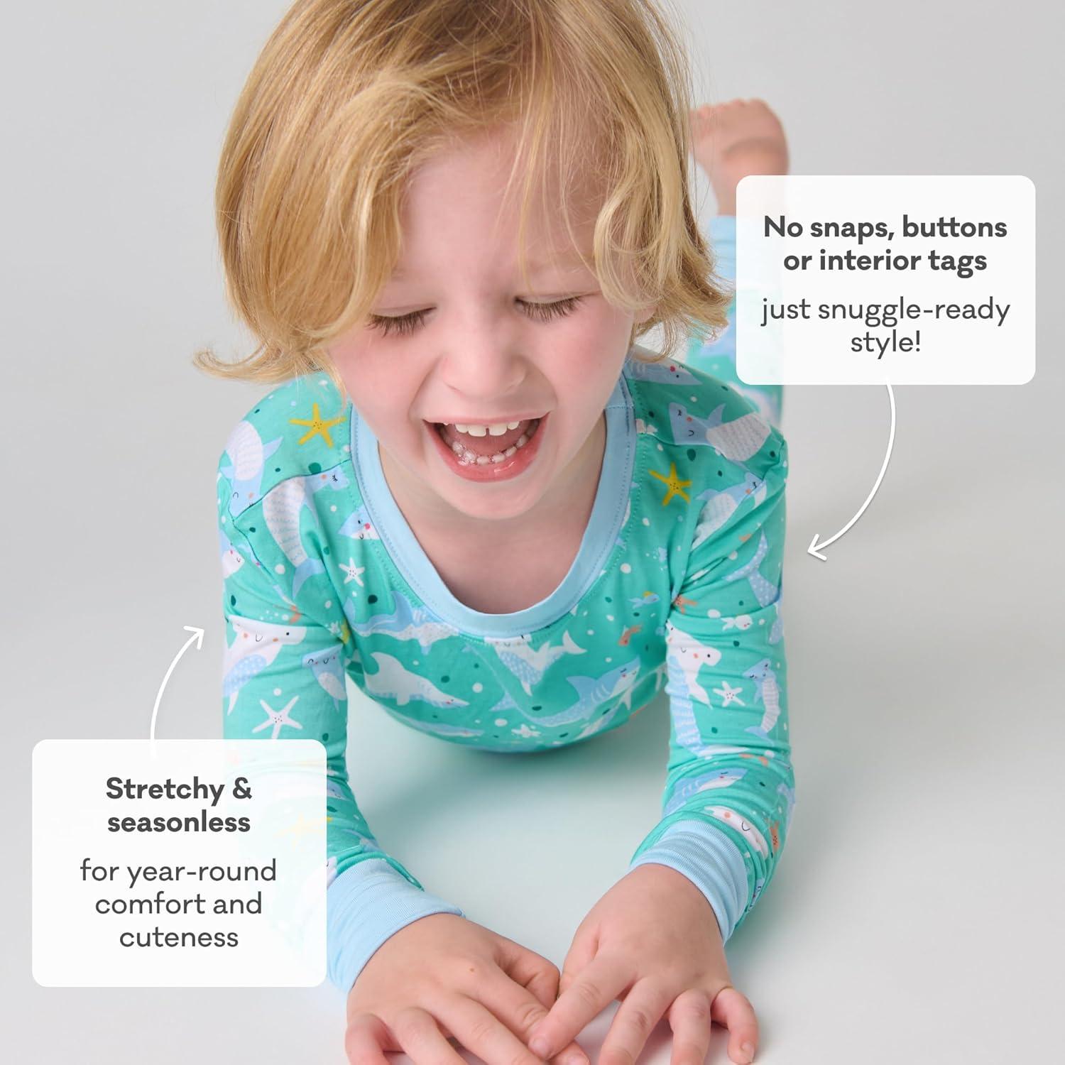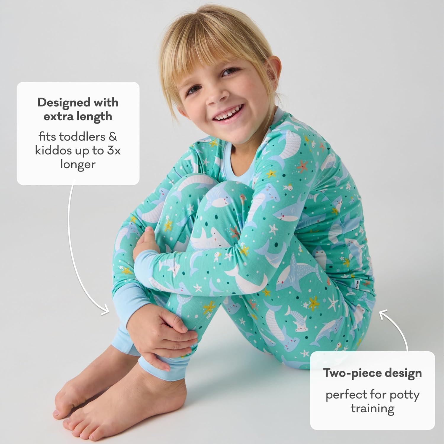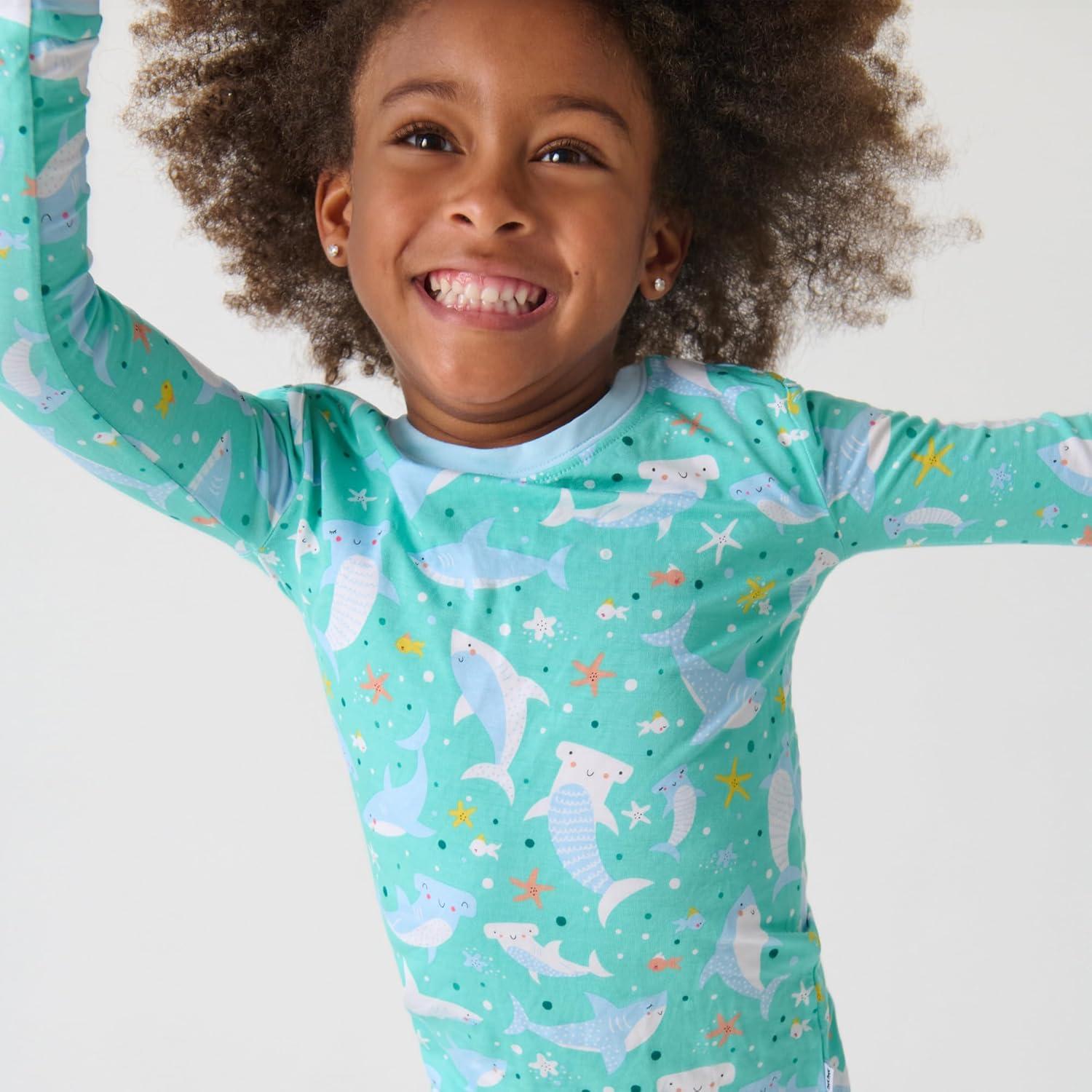 Little Sleepies Two-Piece Pajama Set for Boys & Girls, Soft Viscose from Bamboo Toddler Pajamas for Kids, Family Matching PJs(Shark Soiree)