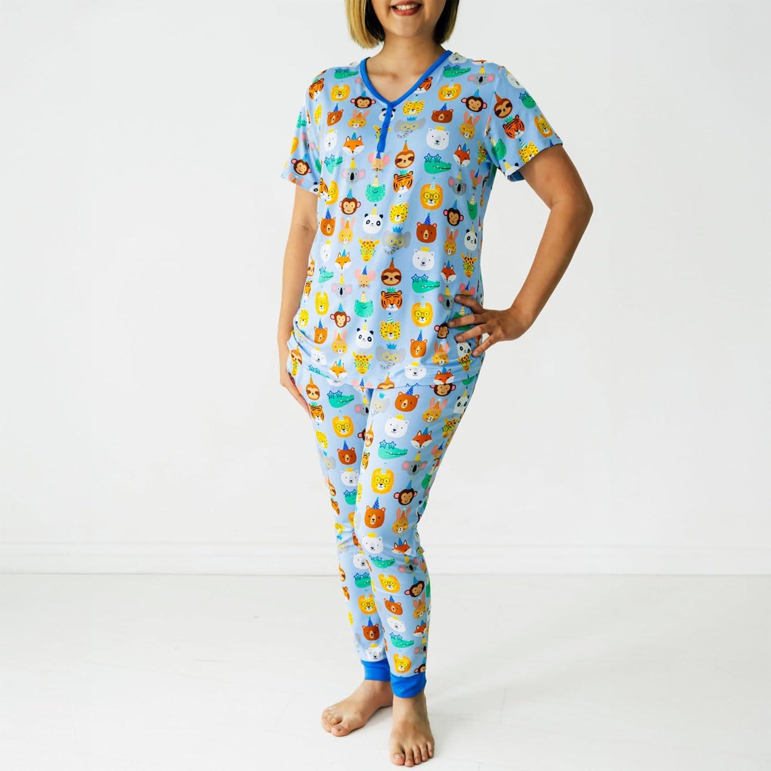 Little Sleepies Women’s Pajama Bottoms, Jogger-Style Comfy PJ Pants, Viscose from Bamboo Pajamas, Family Matching Outfits(Blue Party Pals)