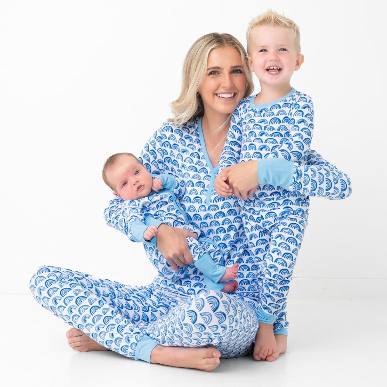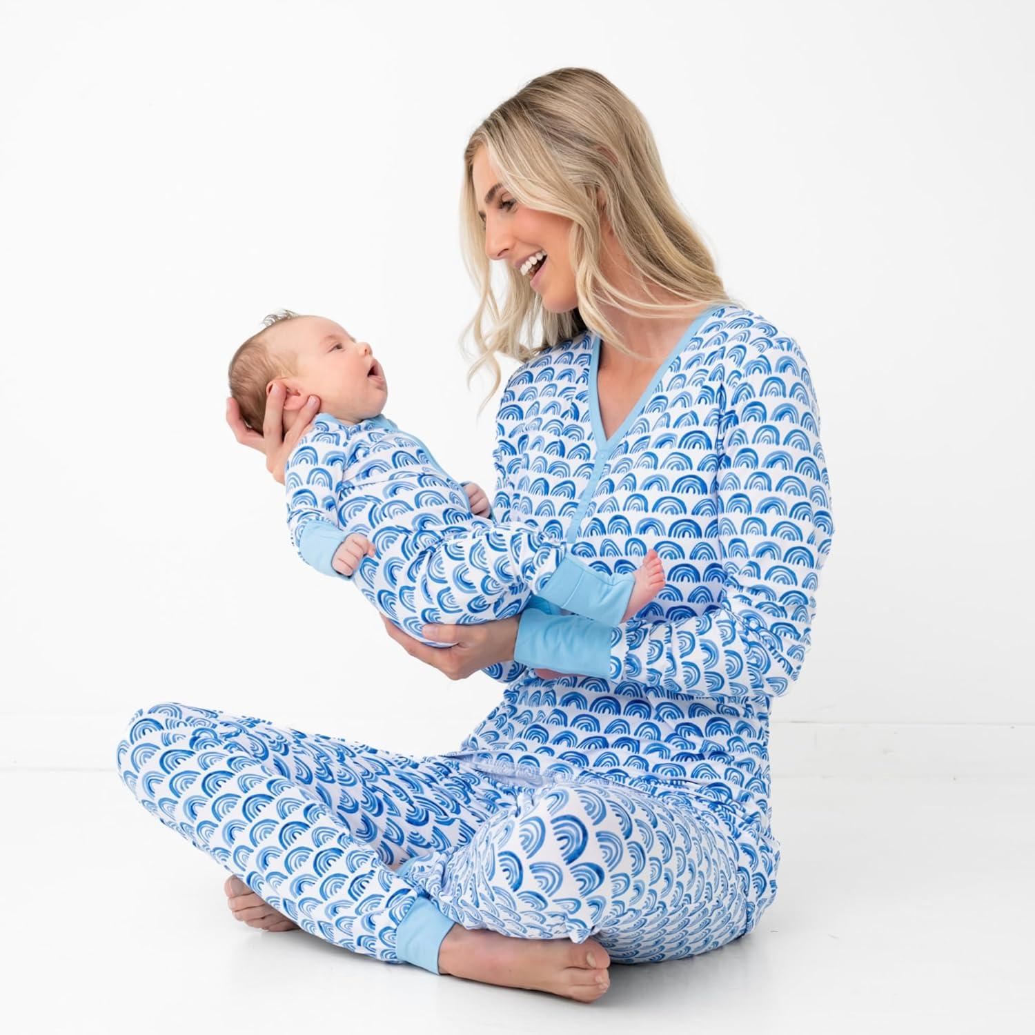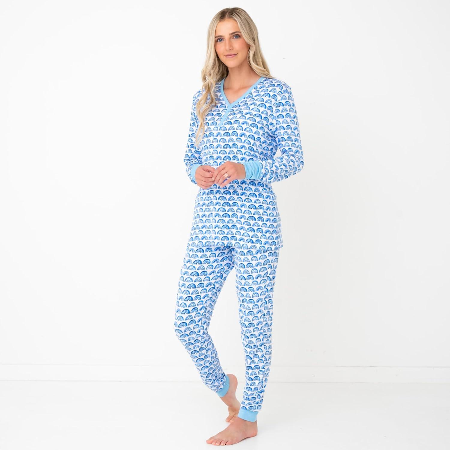Little Sleepies Women’s Pajama Bottoms, Jogger-Style Comfy PJ Pants, Viscose from Bamboo Pajamas, Family Matching Outfits(Blue Rainbows)