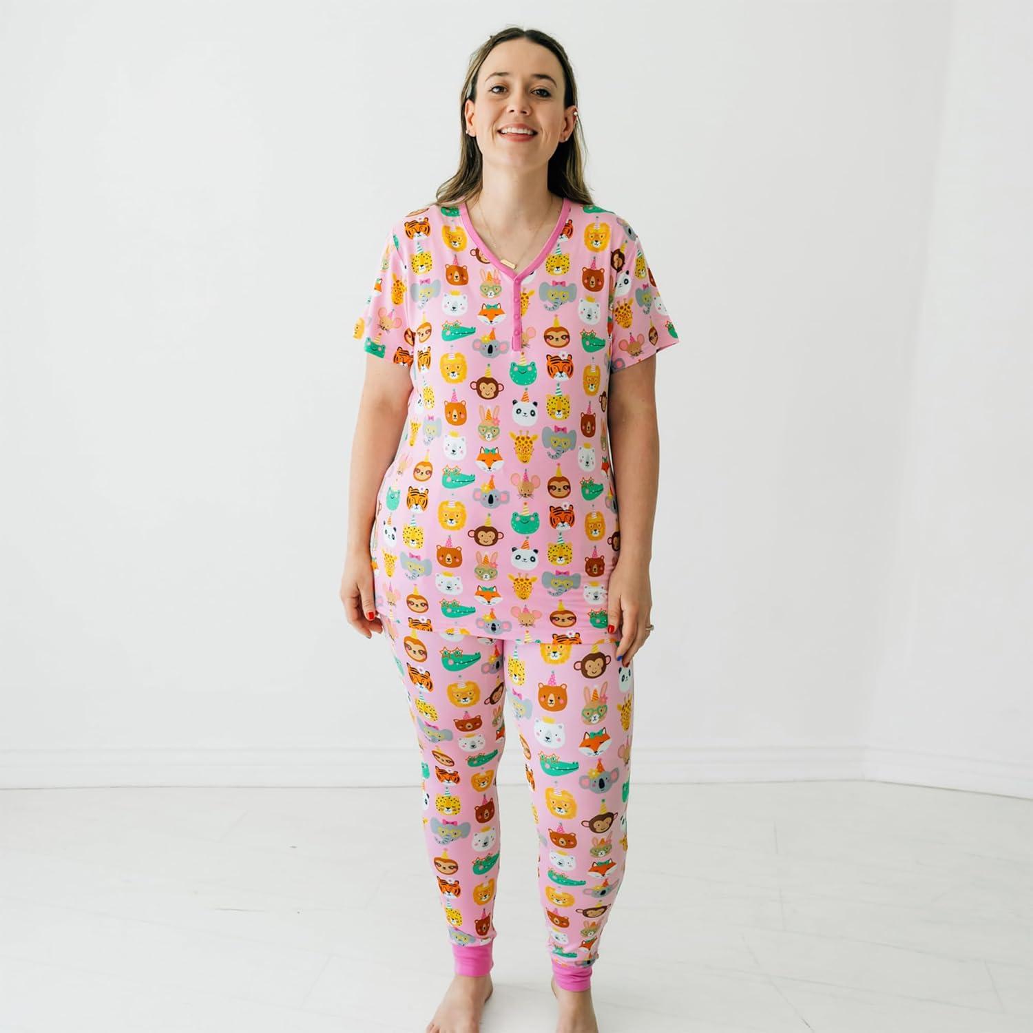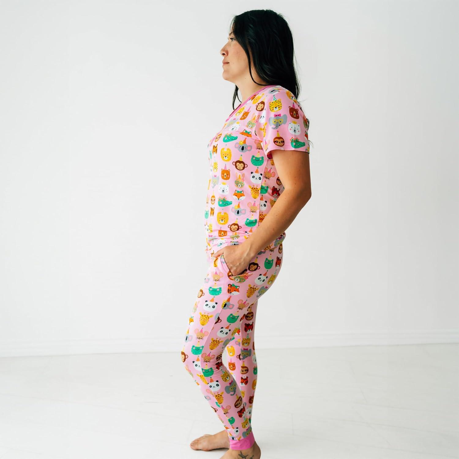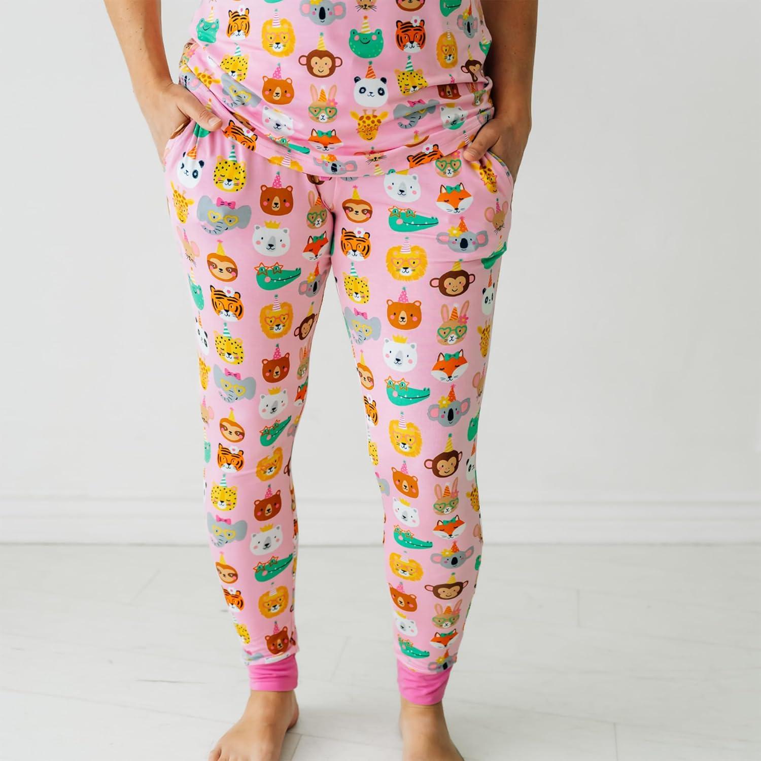 Little Sleepies Women’s Pajama Bottoms, Jogger-Style Comfy PJ Pants, Viscose from Bamboo Pajamas, Family Matching Outfits(Pink Party Pals)
