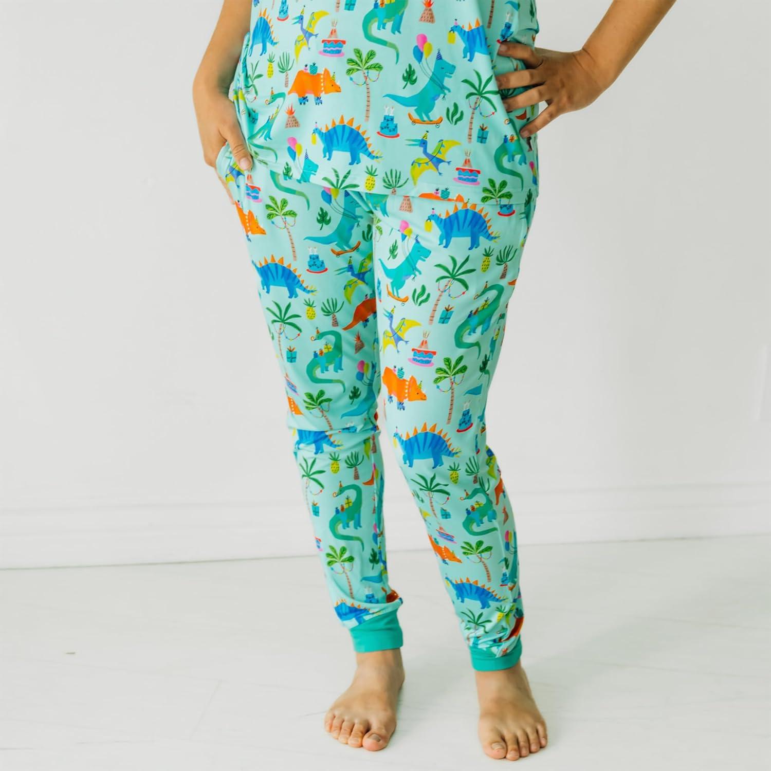 Little Sleepies Women’s Pajama Bottoms, Jogger-Style Comfy PJ Pants, Viscose from Bamboo Pajamas, Family Matching Outfits(Prehistoric Party)