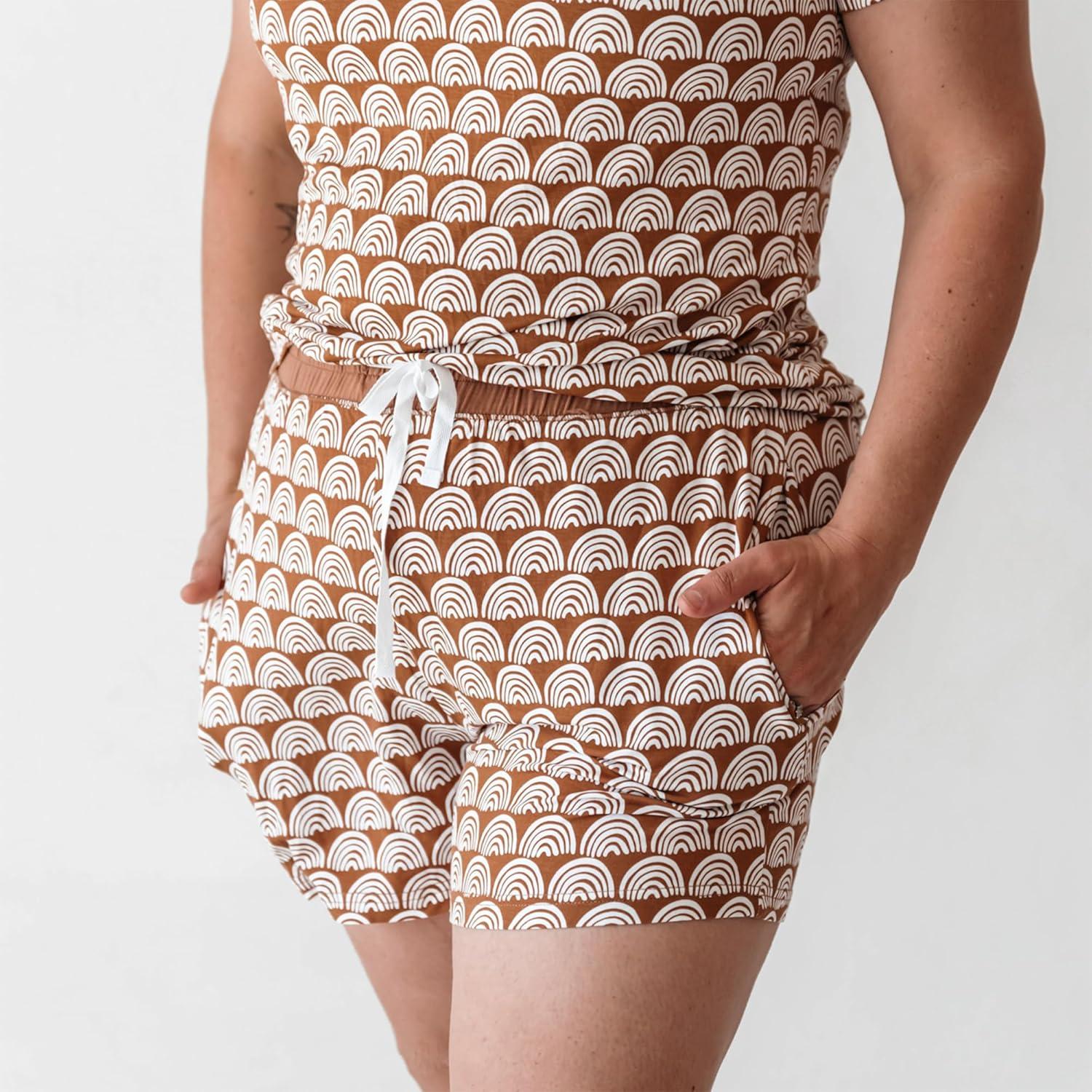 Little Sleepies Women’s Pajama Shorts, Viscose Derived from Bamboo Womens Sleep Bottoms, Lounge Shorts with Side Pockets(Rust Rainbows)