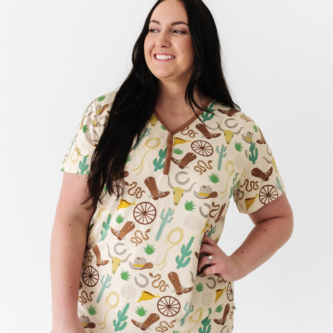 Little Sleepies Women’s Pajama Top, Viscose Derived from Bamboo, Soft Button Up Pajama Top, Nursing Friendly, Short Sleeve(Caramel Ready to Rodeo)