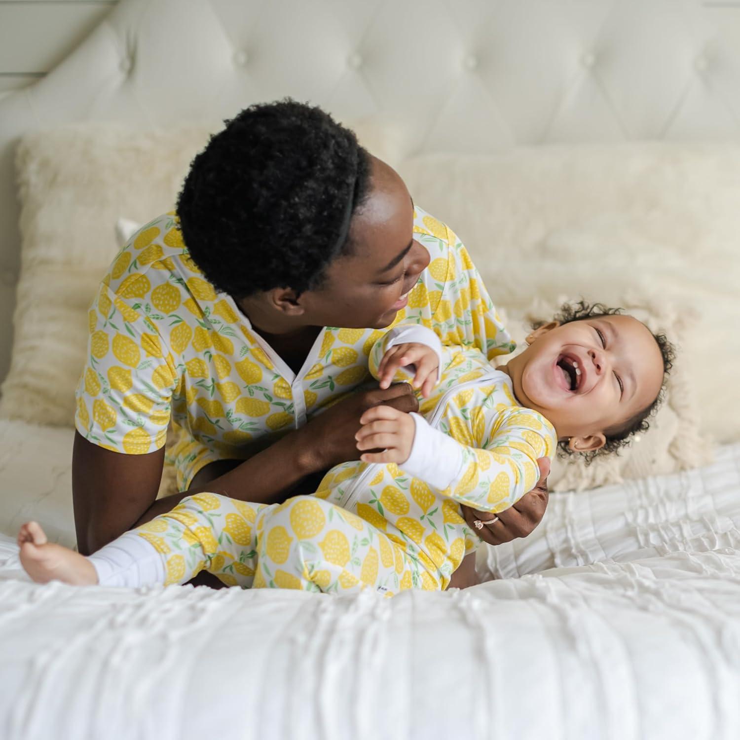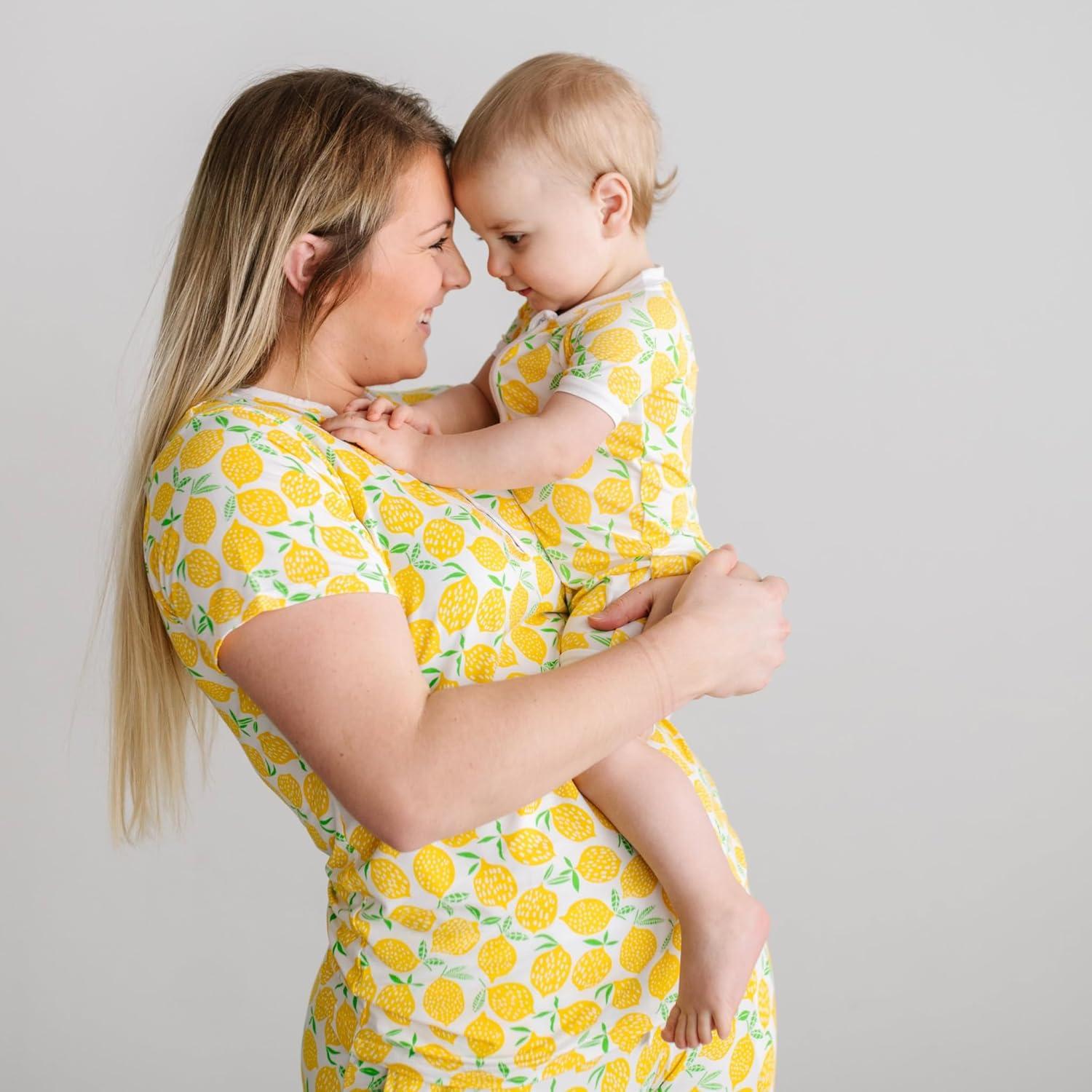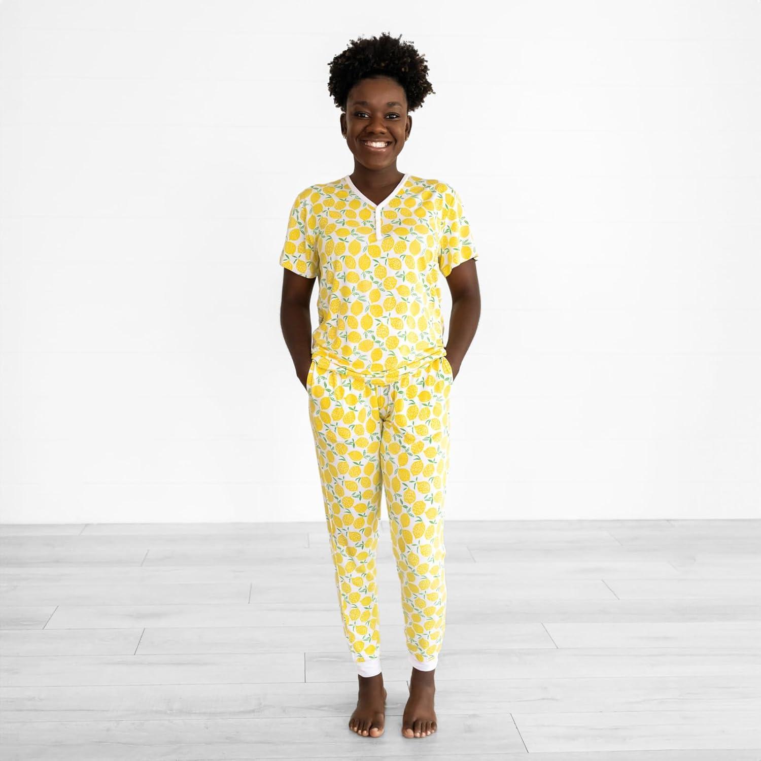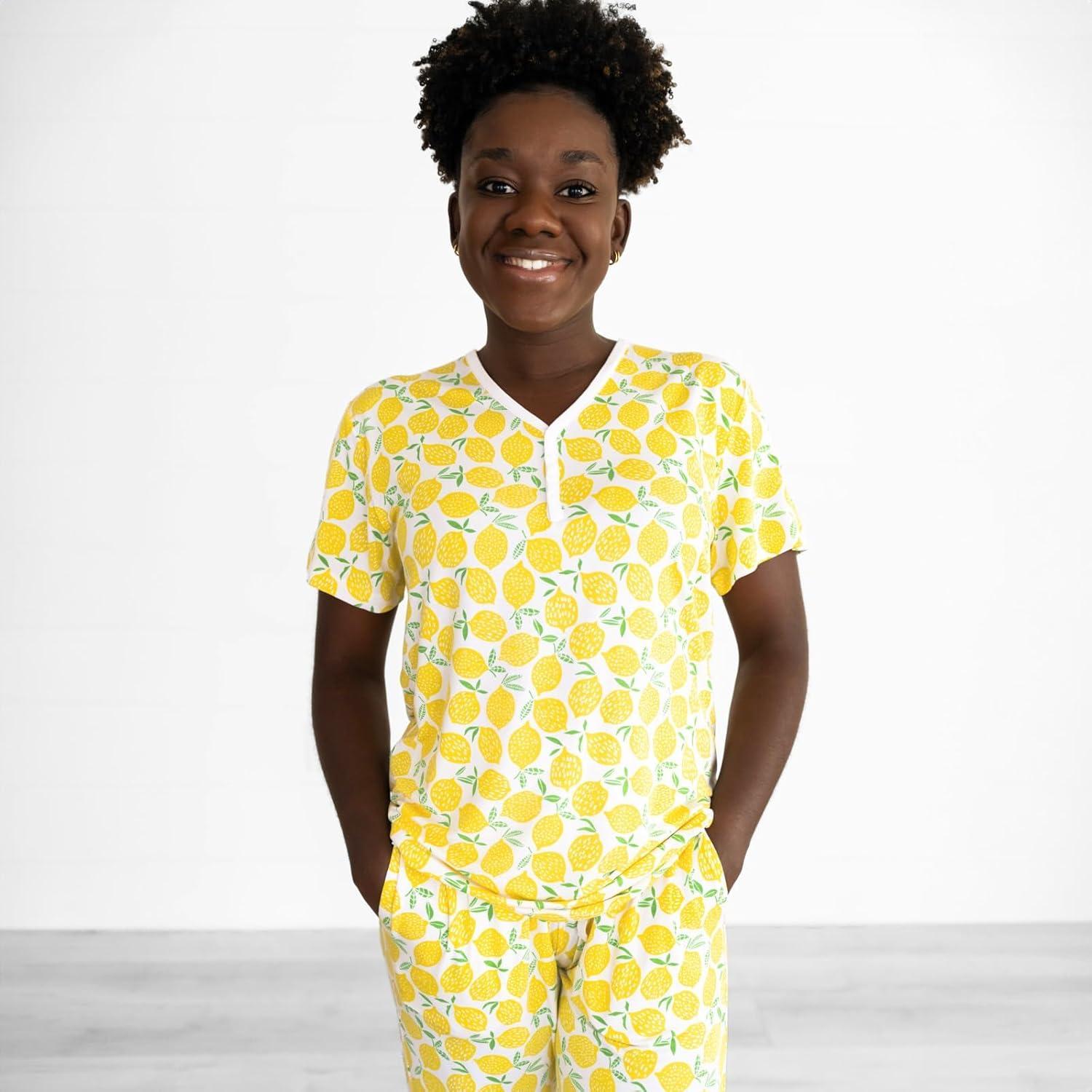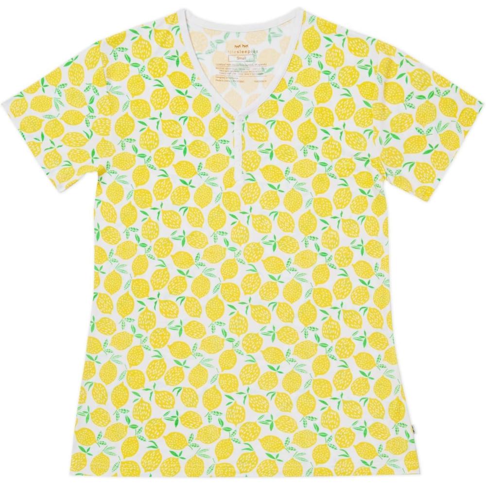 Little Sleepies Women’s Pajama Top, Viscose Derived from Bamboo, Soft Button Up Pajama Top, Nursing Friendly, Short Sleeve(Lemons)
