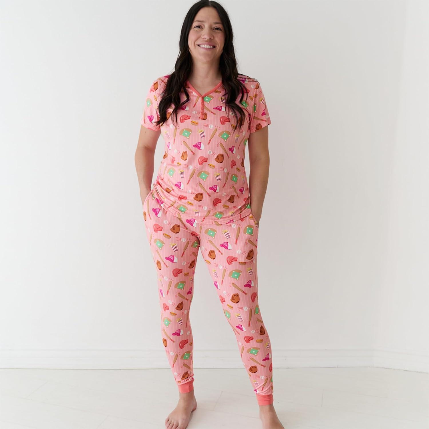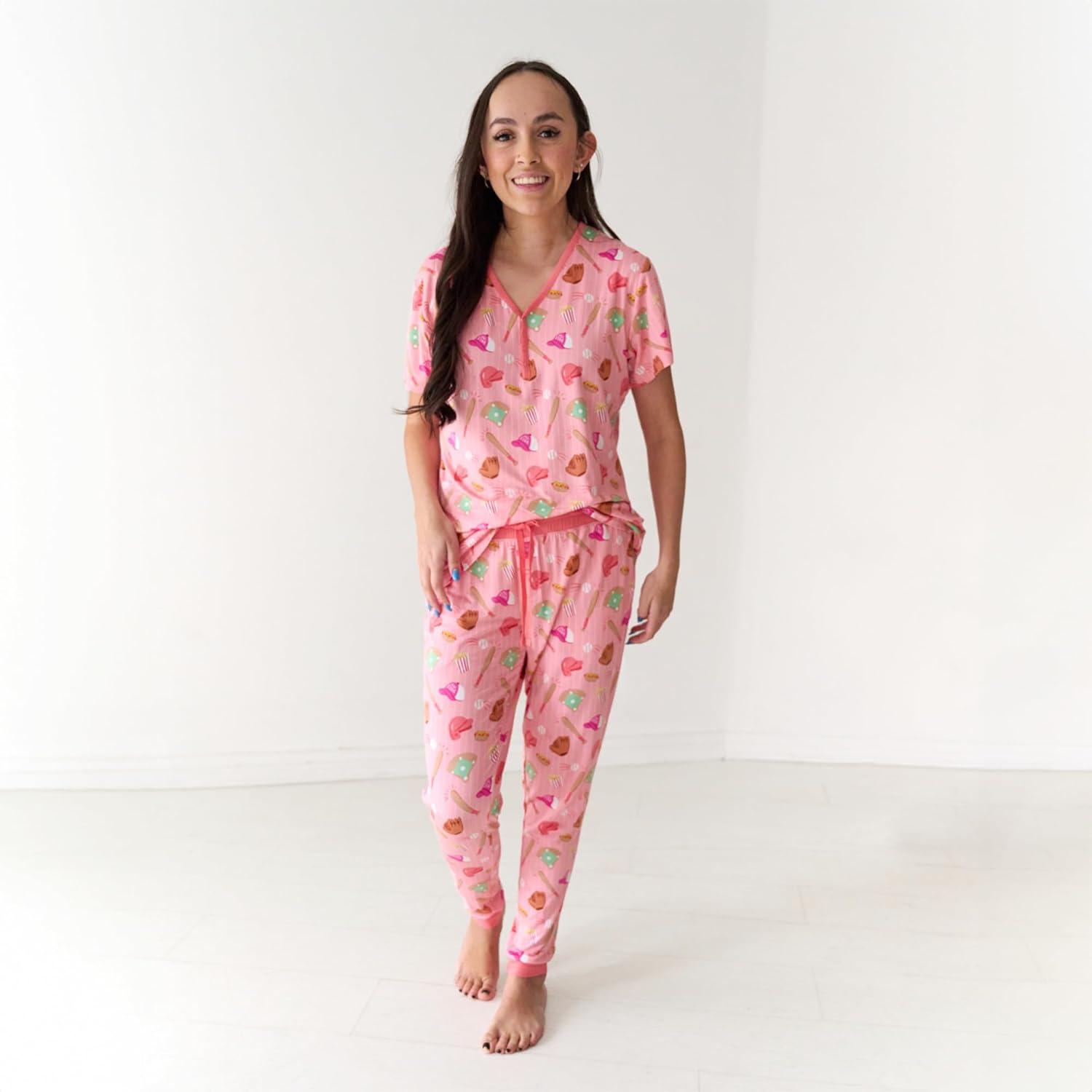 Little Sleepies Women’s Pajama Top, Viscose Derived from Bamboo, Soft Button Up Pajama Top, Nursing Friendly, Short Sleeve(Pink All Stars)