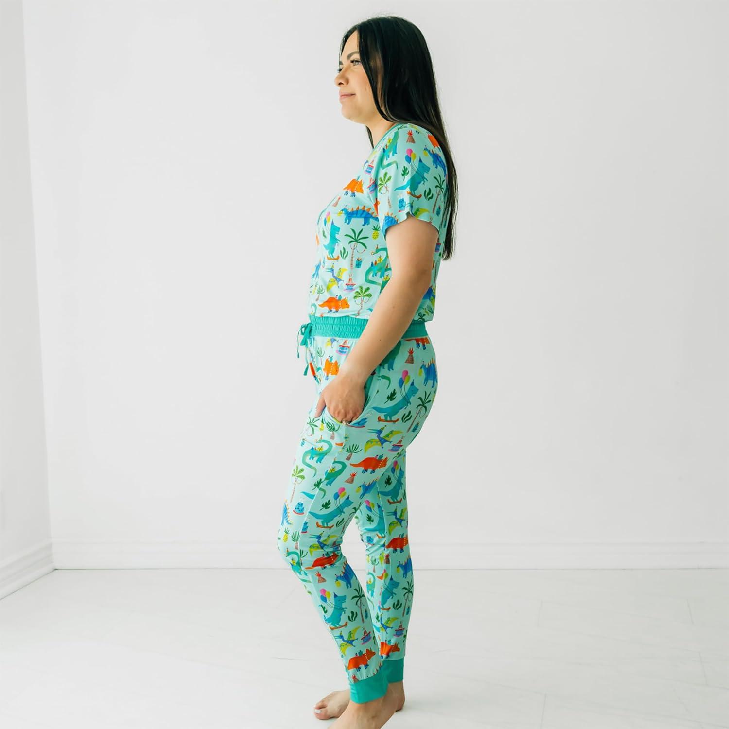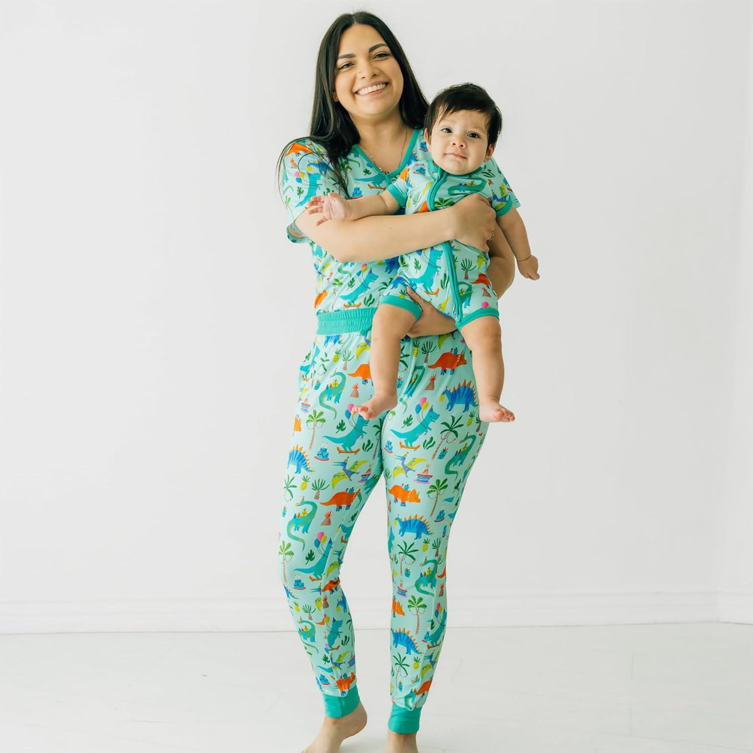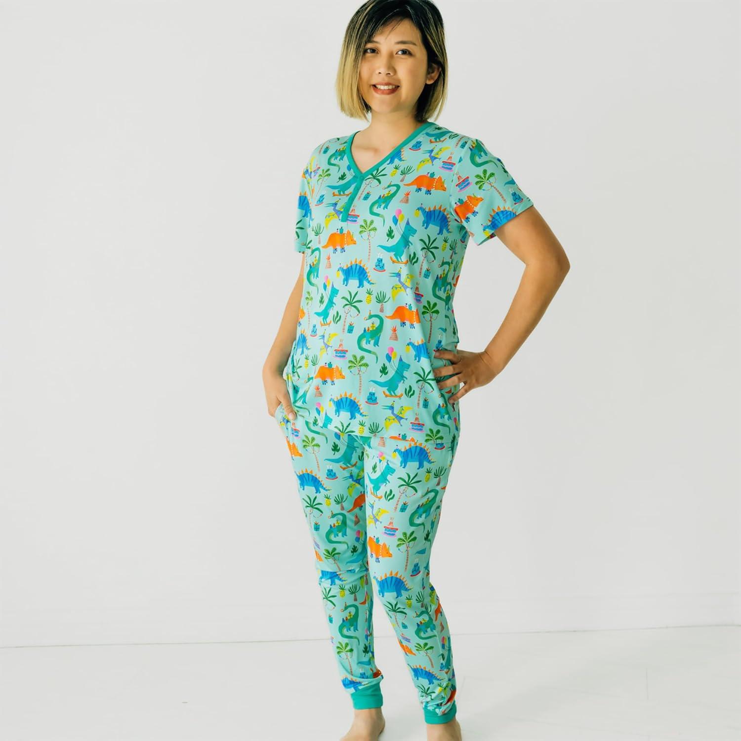 Little Sleepies Women’s Pajama Top, Viscose Derived from Bamboo, Soft Button Up Pajama Top, Nursing Friendly, Short Sleeve(Prehistoric Party)