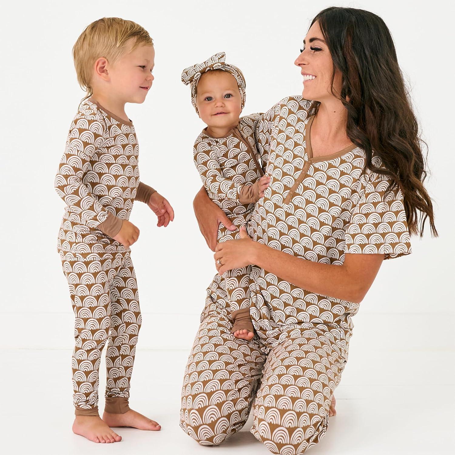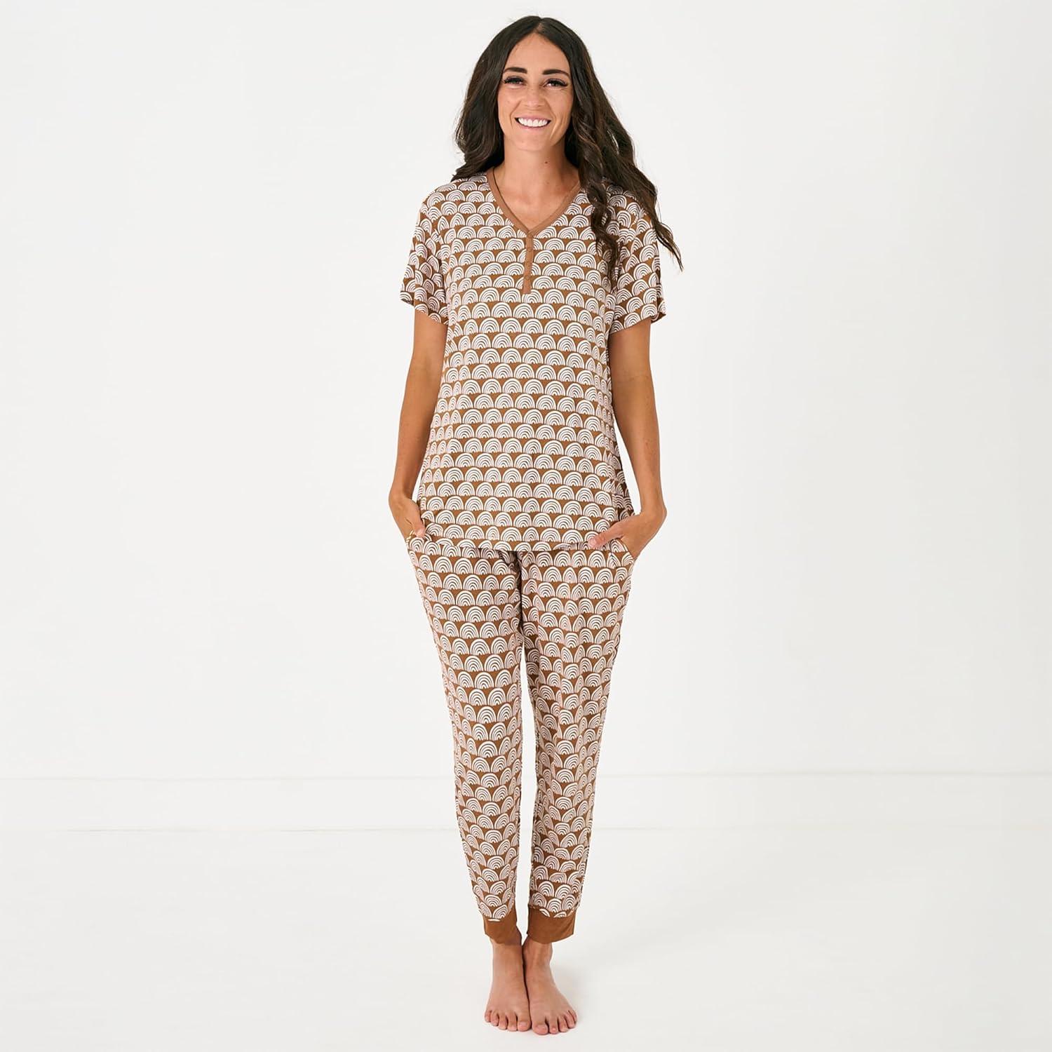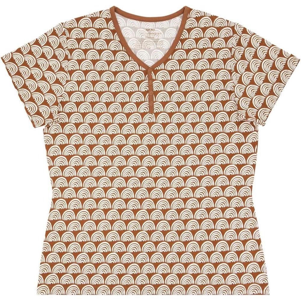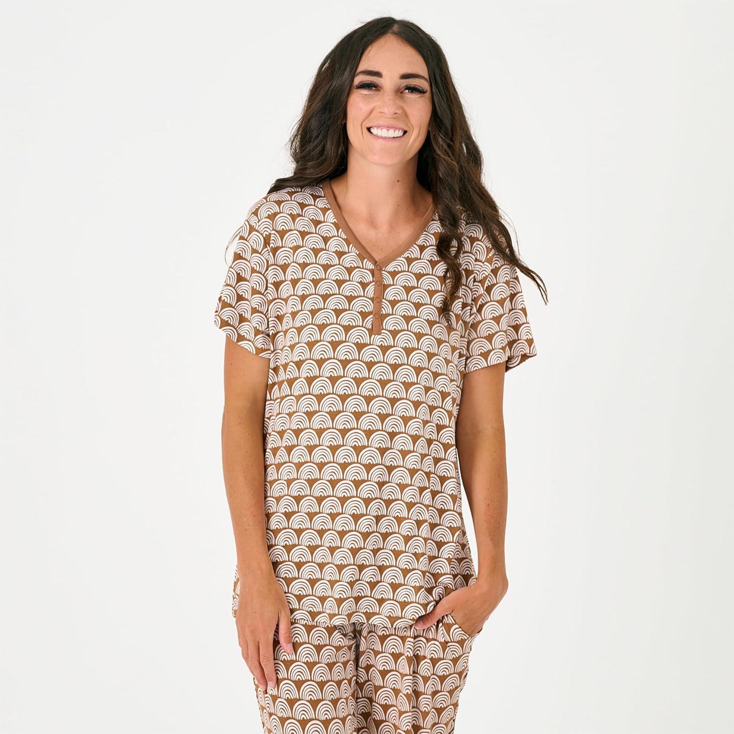 Little Sleepies Women’s Pajama Top, Viscose Derived from Bamboo, Soft Button Up Pajama Top, Nursing Friendly, Short Sleeve(Rust Rainbows)