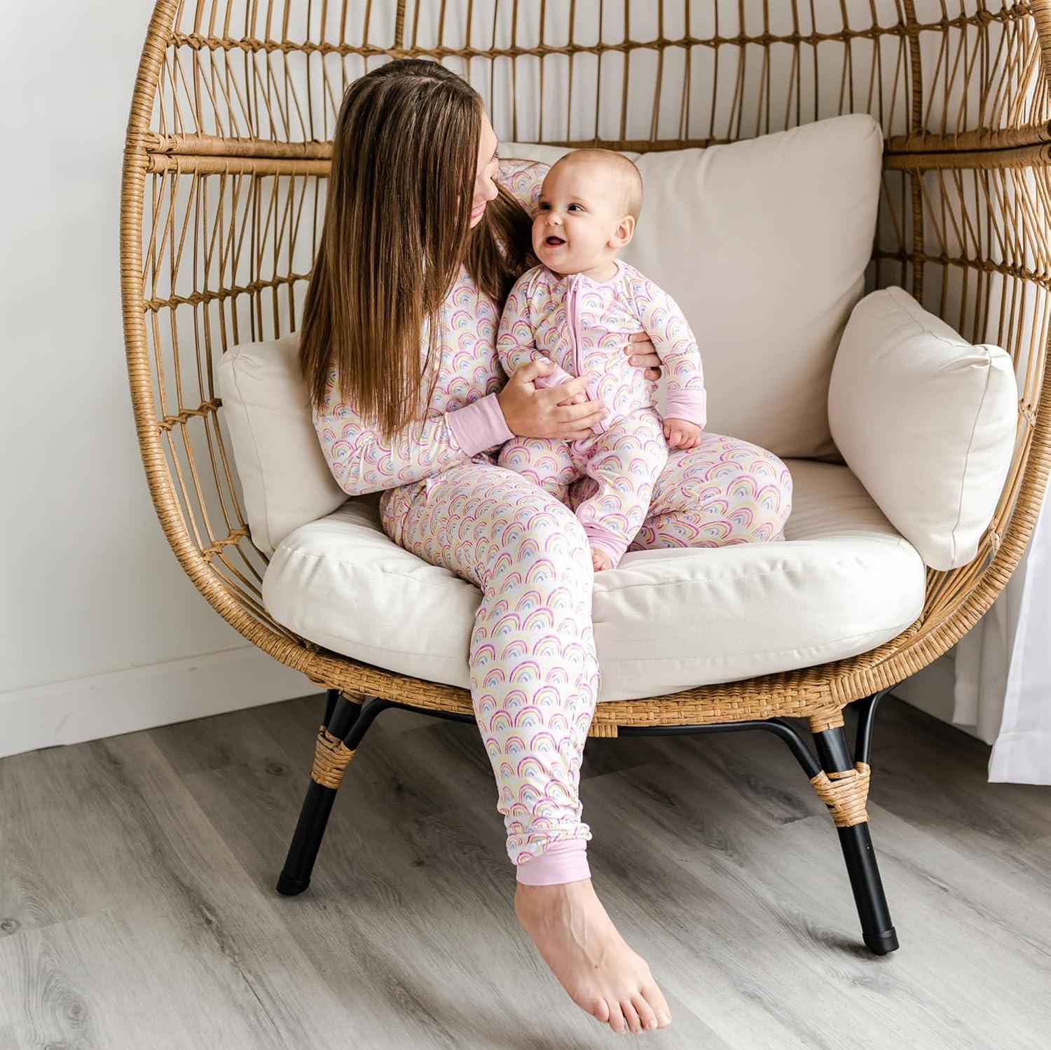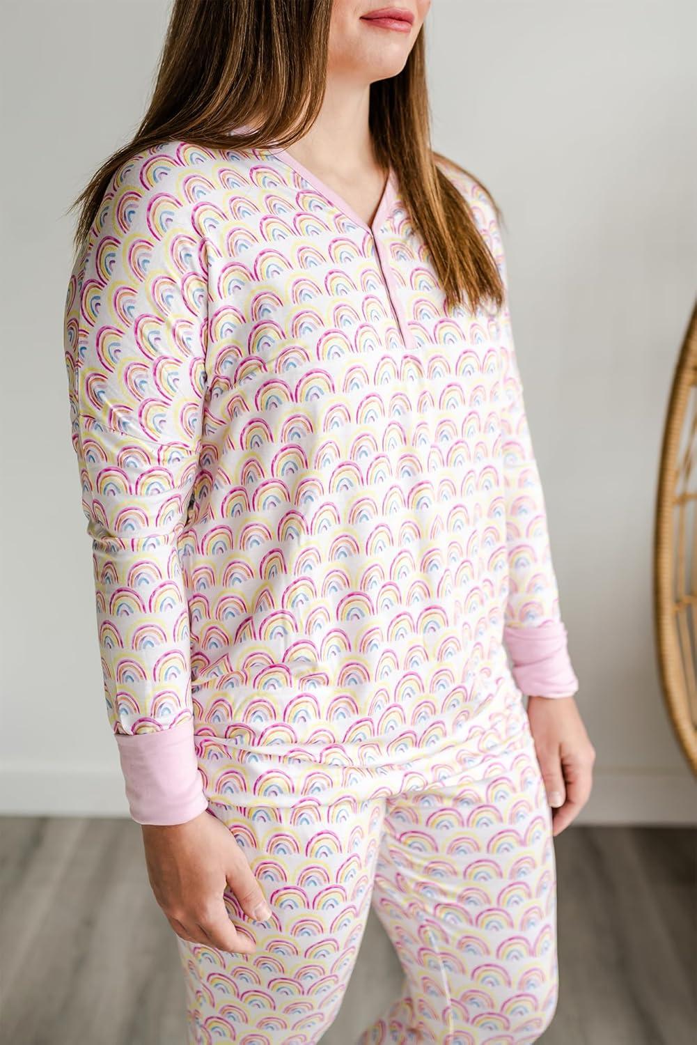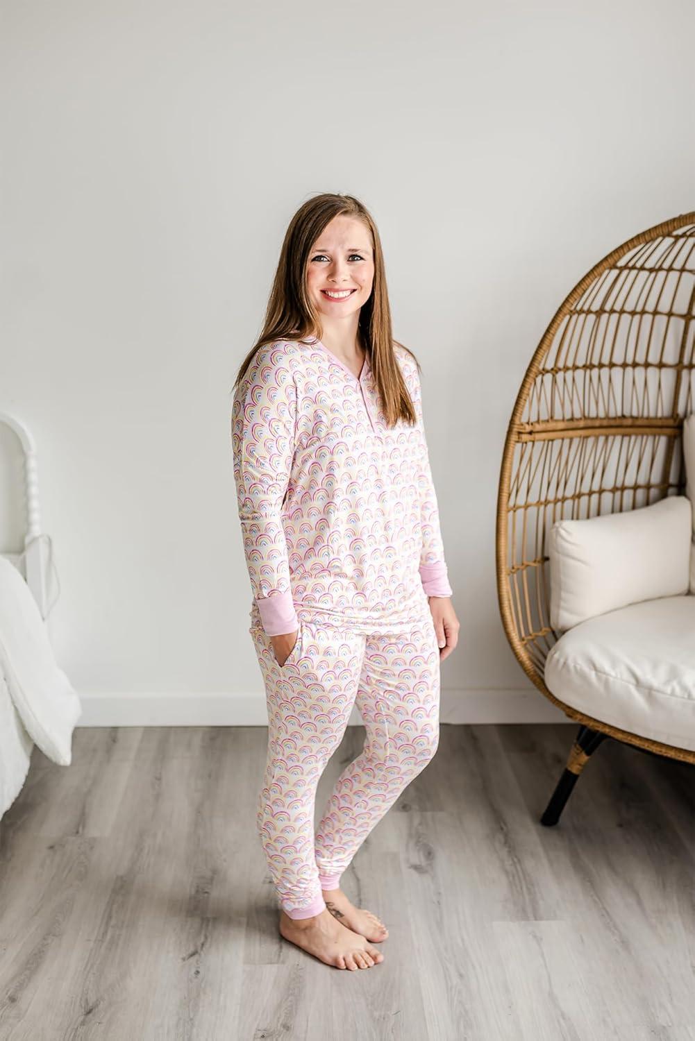 Little Sleepies Womens Pajama Top, Viscose from Bamboo, Henley Button Up Nursing PJs, Family Matching Pajamas for Women Set(Pastel Rainbows)