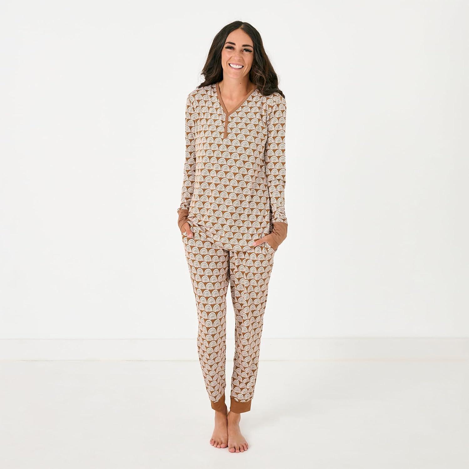Little Sleepies Womens Pajama Top, Viscose from Bamboo, Henley Button Up Nursing PJs, Family Matching Pajamas for Women Set(Rust Rainbows)